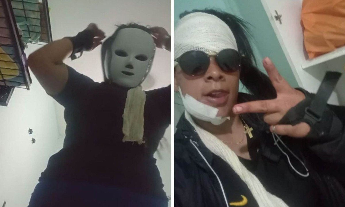 Imagens gravadas pela própria suspeita mostram parte das agressões. Nos vídeos, ela aparece usando máscara enquanto registra a vítima ferida. Conforme depoimento à polícia, ela pisou no pescoço e no peito do homem, chutou a cabeça dele contra um móvel, causando cortes e sangramento, e desferiu golpes de faca quando ele tentou pedir socorro.