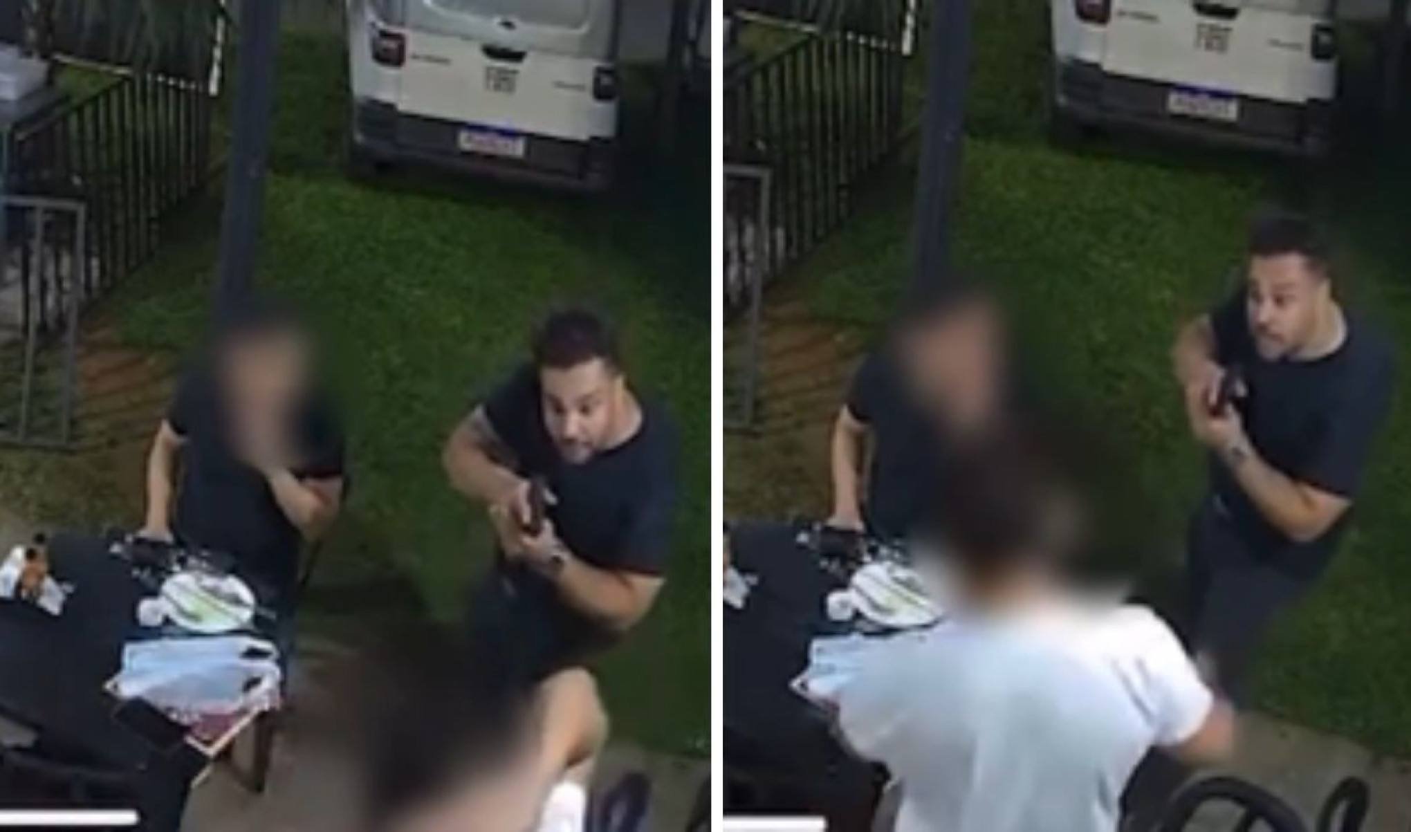 Logo depois, quando um dos amigos se levantou para pagar o pedido, o servidor sacou uma pistola calibre 9 mm, apontou a arma e ordenou que ele se deitasse no chão, com as mãos na cabeça. Os homens começaram a pedir para que alguém acionasse a polícia, mas o suspeito ironizou. “Pode chamar, pois eu sou a polícia!”, disse, enquanto gritava, apontava a arma e falava palavrões.