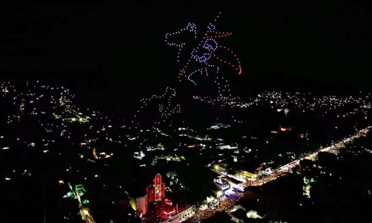 O céu de Quintino amanheceu iluminado por um show de drones em homenagem ao dia de São Jorge.