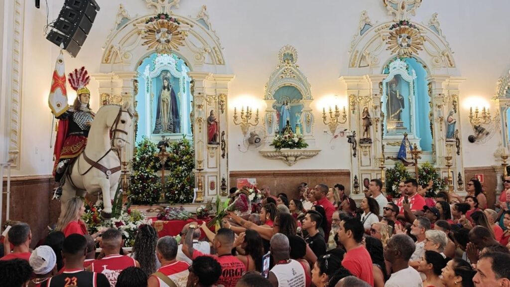 As celebrações do Dia de São Jorge começaram com forte mobilização de fiéis no Rio de Janeiro nesta quinta-feira (23/4), reunindo multidões desde a madrugada em diferentes pontos da cidade.