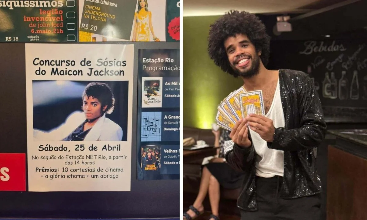 RIO DE JANEIRO, RJ (FOLHAPRESS) - Tiago Pereira não planejava vencer - na verdade, nem planejava competir. De férias no Rio de Janeiro, o jovem do Tocantins que mora em Brasília decidiu participar de um concurso de sósias de Michael Jackson (1958-2009) quase por impulso, depois de ver um anúncio no Instagram. A disputa, promovida pela rede de cinemas Estação Net, teve seis participantes neste sábado (25/4). Ele foi sem pretensão. "Eu vim mais pela zoeira e tal, pra dançar", conta. Saiu de lá em primeiro lugar.