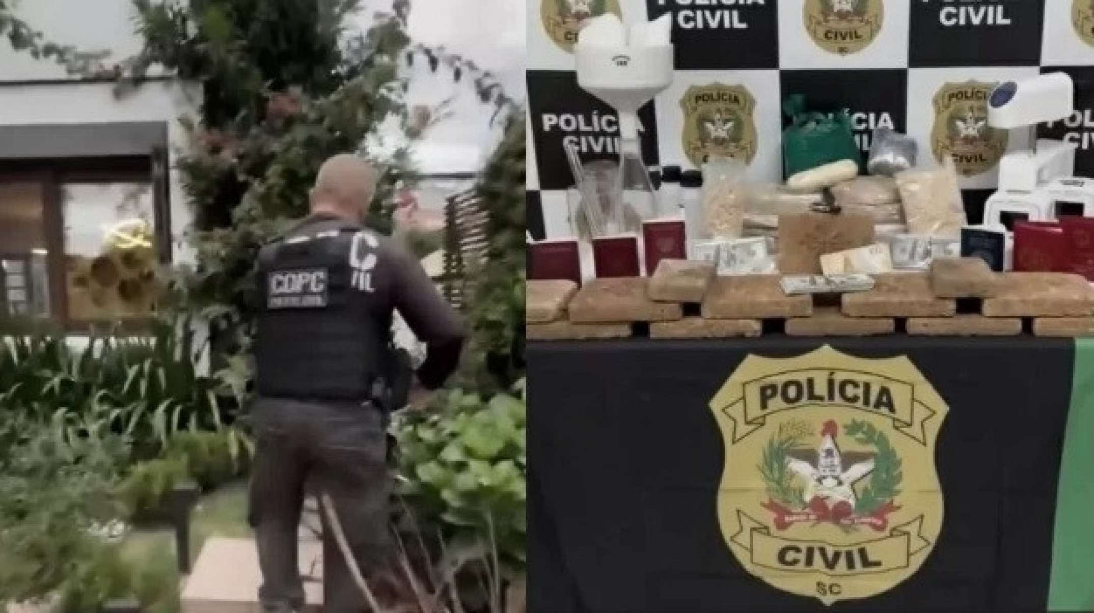 O suspeito usava em uma mansão em Florianópolis como fachada para refinar cocaína. Segundo a polícia, o homem aproveitava o grande movimento do bairro de luxo para esconder as atividades ilegais sem levantar suspeitas.