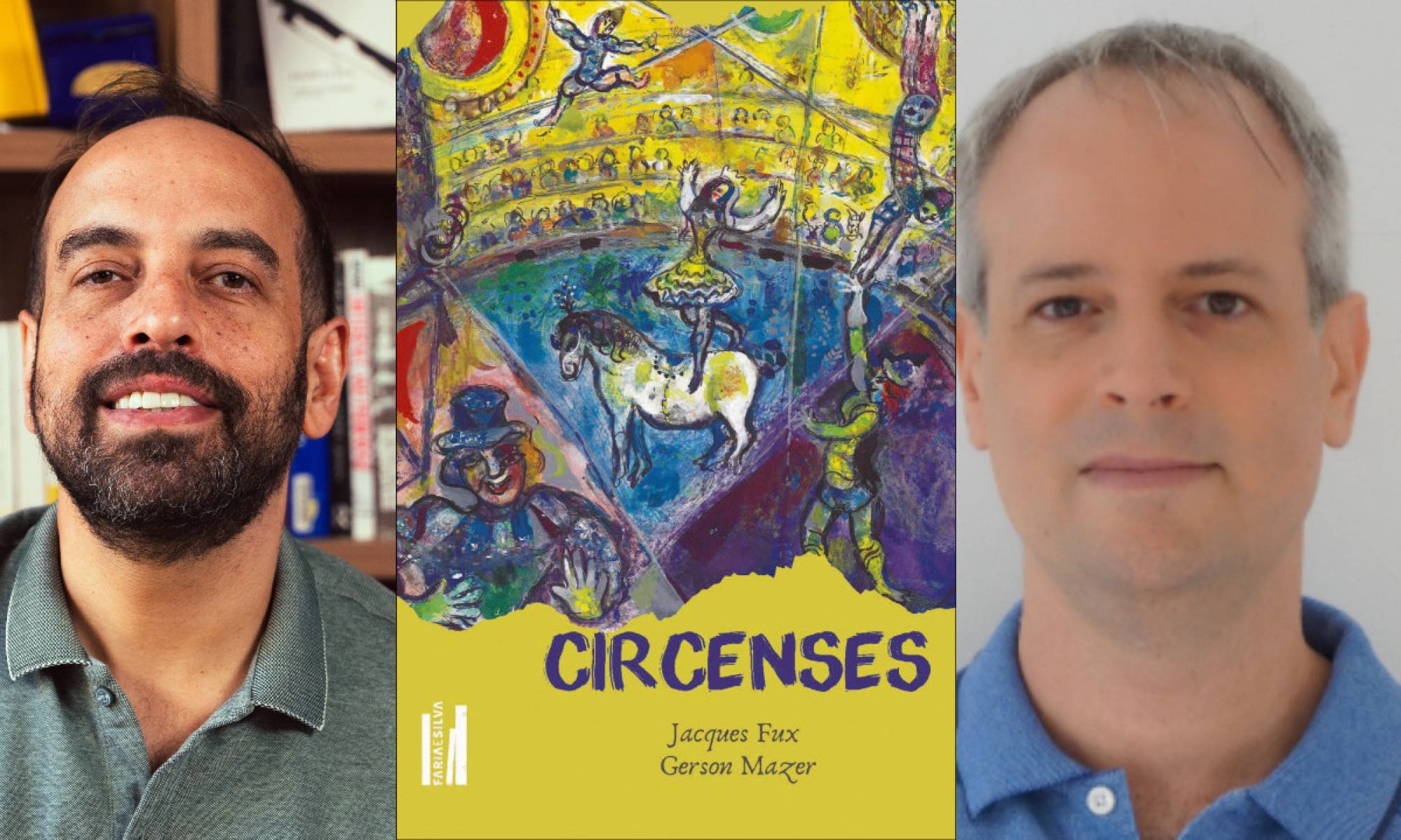 Nada mais apropriado para representar o riso e a dor do que o circo chagalliano, um universo em que a fragilidade e a alegria convivem e são sustentadas por uma atmosfera de fantasia. Afinal, Marc Chagall era um pintor de memórias, metáforas e magias. Em “O cavalo de circo” (1964), que ilustra a capa de “Circenses”, novo livro do premiado Jacques Fux, desta vez em parceria com Gerson Mazer, Chagall destaca uma artista equilibrista, sustentada por um cavalo.