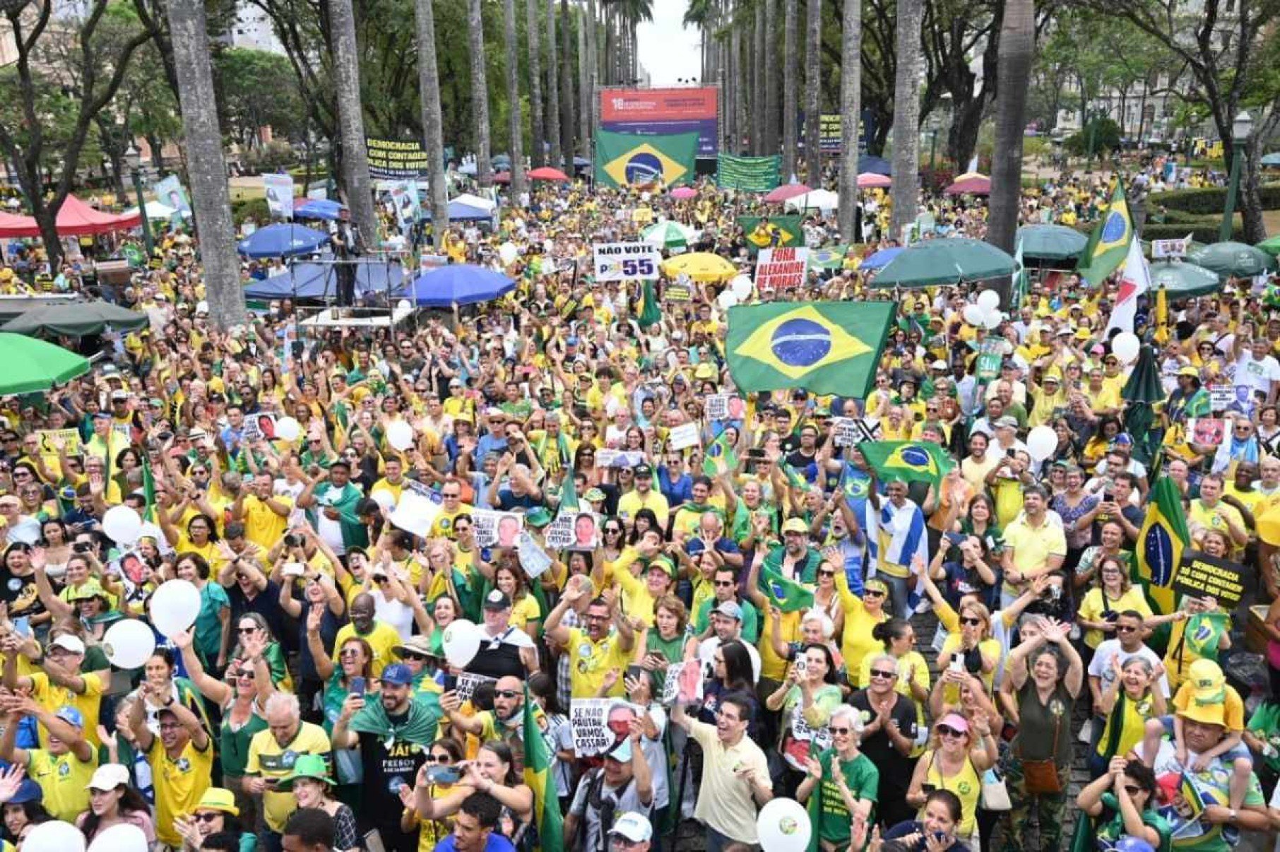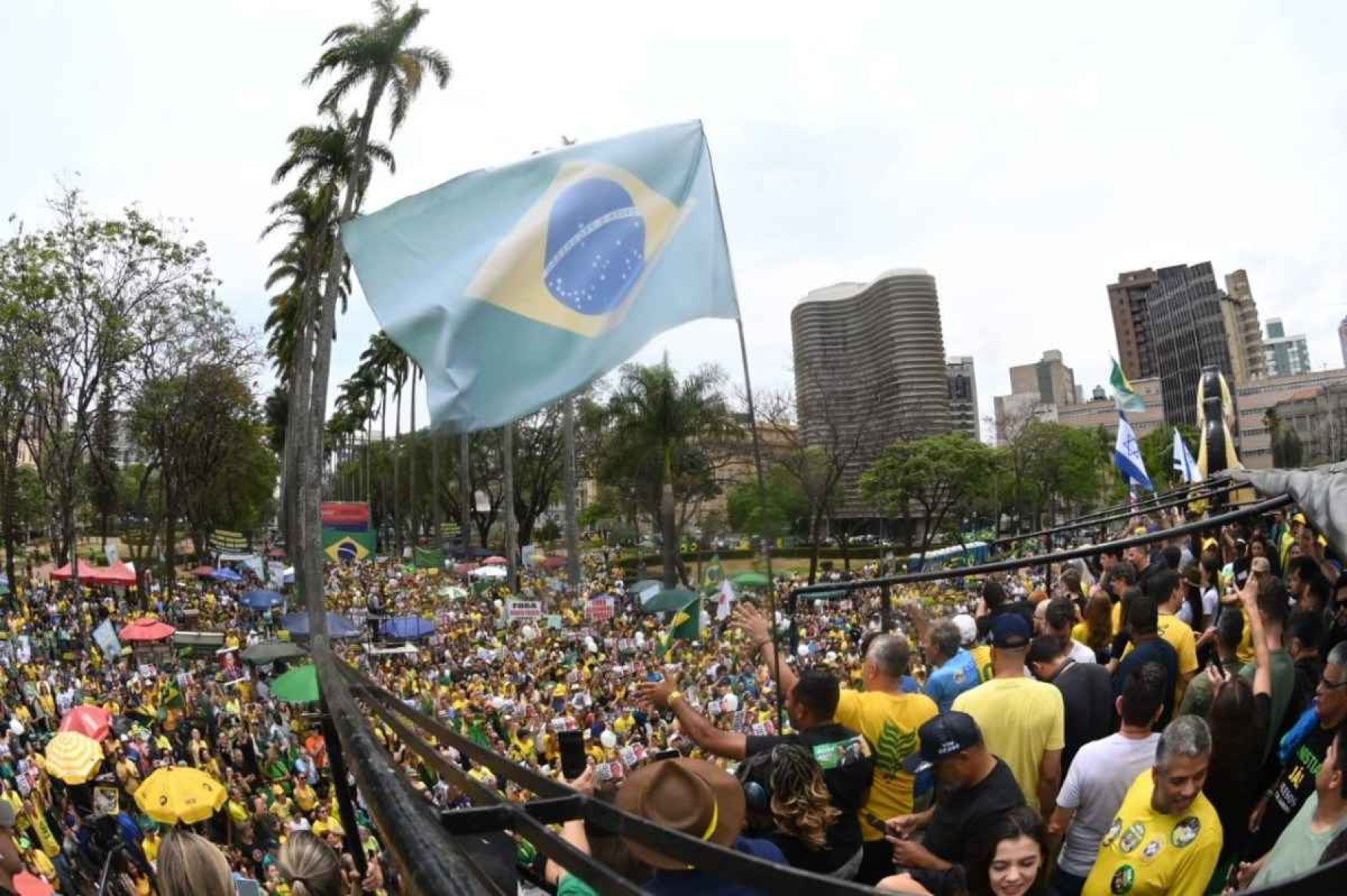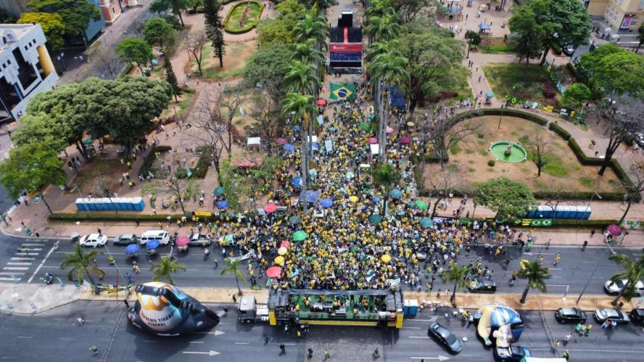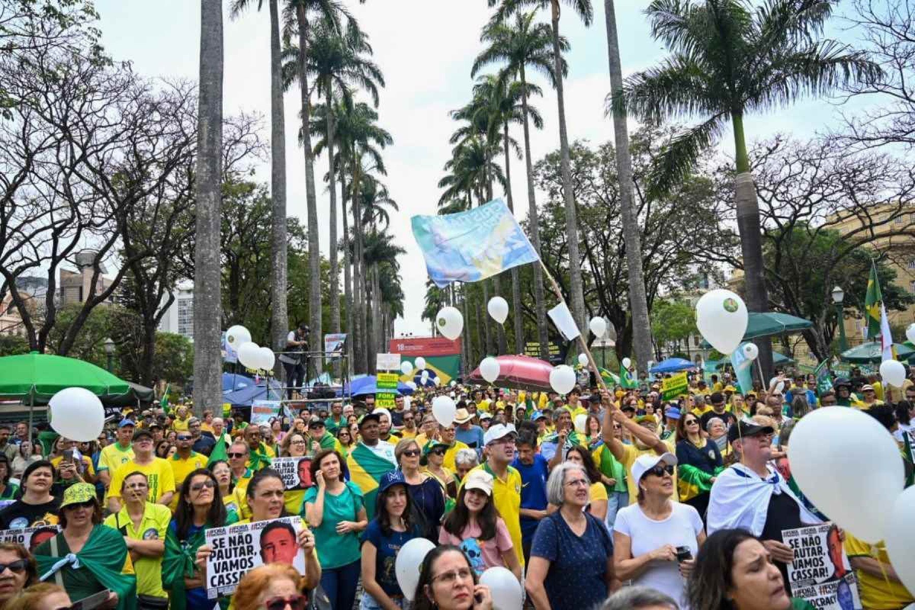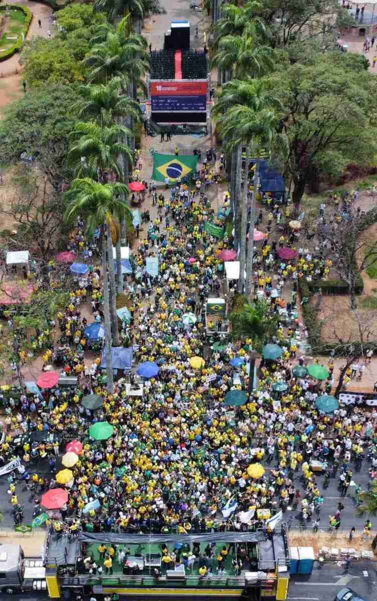 Apoiadores do ex-presidente Jair Bolsonaro (PL) se reuniram na Praça da Liberdade neste domingo (29). Senadores e deputados de todo o país também marcaram presença.