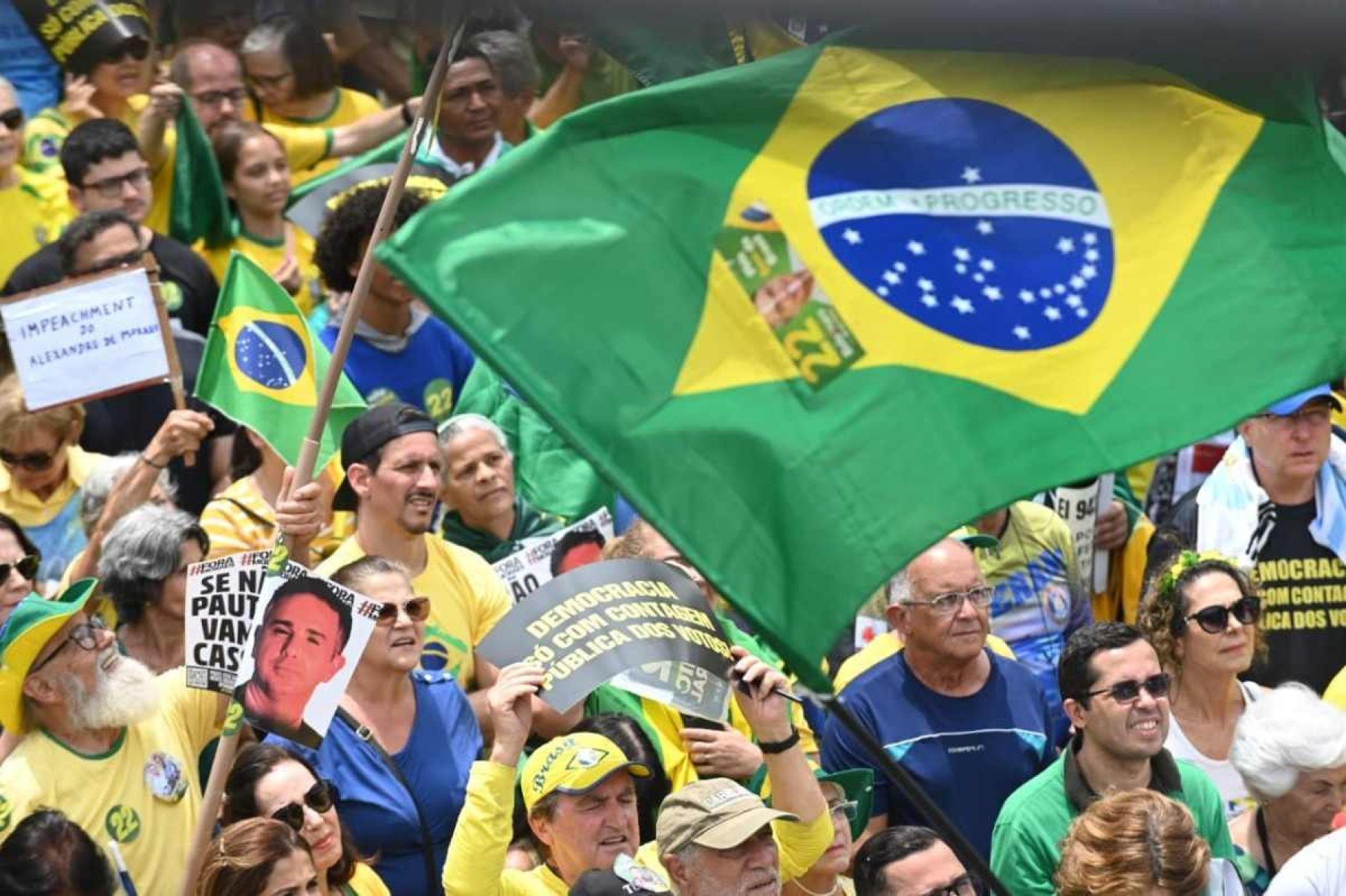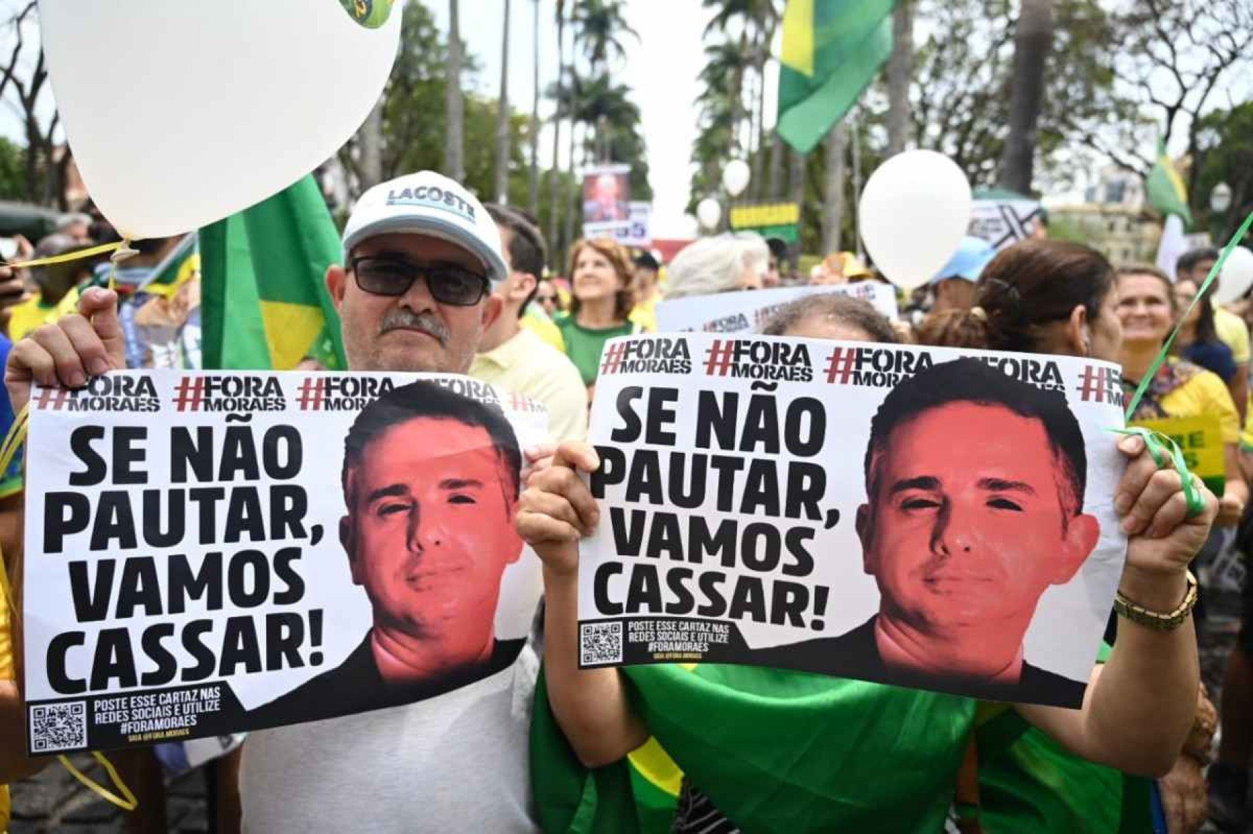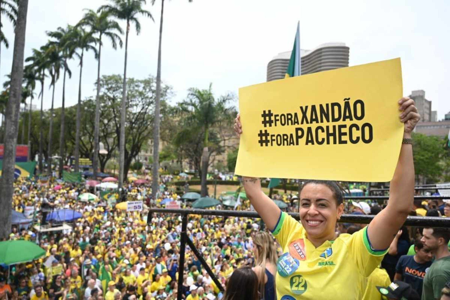 Manifestação que pede o impeachment do ministro do Supremo Tribunal Federal (STF), Alexandre de Moraes, aconteceu na Praça da Liberdade neste domingo (29)