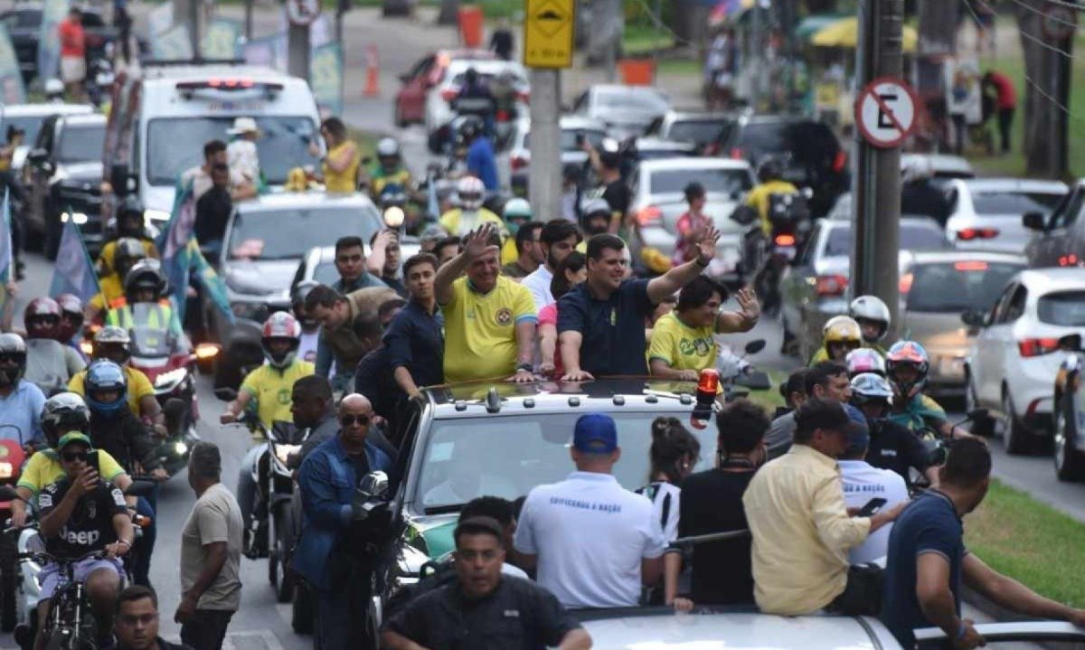 Além do ex-presidente e do candidato, estavam na carroceria de duas caminhonetes os deputados federais Nikolas Ferreira (PL) e Domingos Sávio (PL), presidente da legenda em Minas. A ex-primeira-dama Michelle Bolsonaro; o deputado estadual Cristiano Caporezzo (PL) e os vereadores recém-eleitos Vile dos Santos (PL) e Pablo Almeida (PL) também estavam nos veículos.