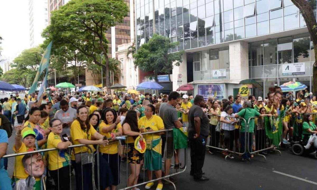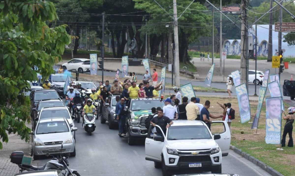 Ninguém fez discursos ou deu entrevistas nesta primeira etapa da ‘motocarreata’, as falas devem ocorrer ao fim do trajeto, na Avenida Afonso Pena. Bolsonaro foi, inequivocamente, a figura mais ovacionada pelos apoiadores, que se espremeram em gradis de metal para tocar e tirar fotos com o ex-presidente. Bruno Engler o acompanhou em contatos menos efusivos com os militantes trajados em verde e amarelo. Nikolas acompanhou o trajeto de forma mais discreta, mas também foi bastante assediado pelo público.