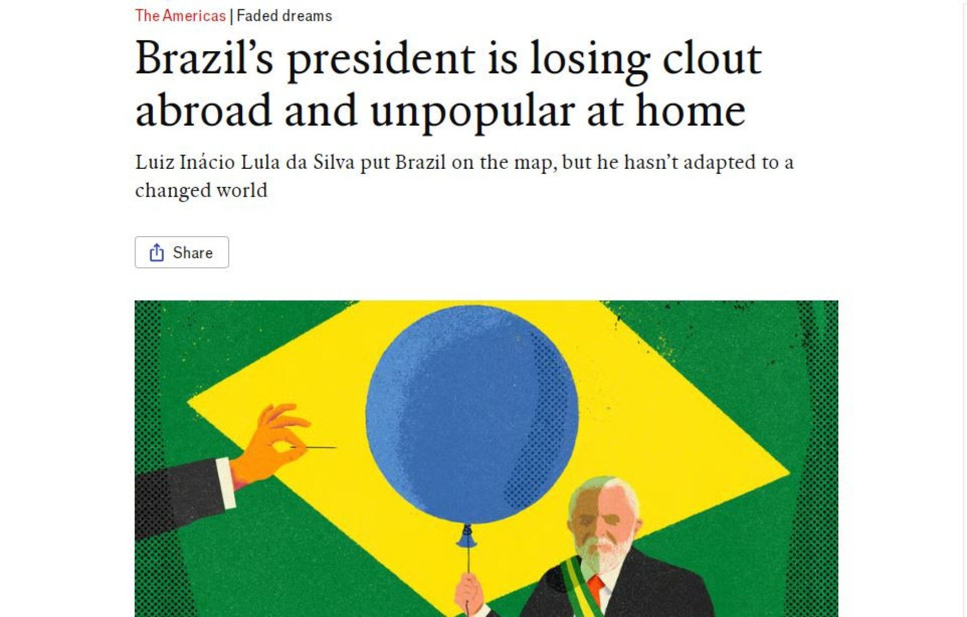 A revista britânica “The Economist” publicou um artigo nesse domingo (29/6) criticando o presidente Luiz Inácio Lula da Silva (PT) e sua política externa, observando que, enquanto o petista perde relevância no exterior, está cada vez menos popular no Brasil.