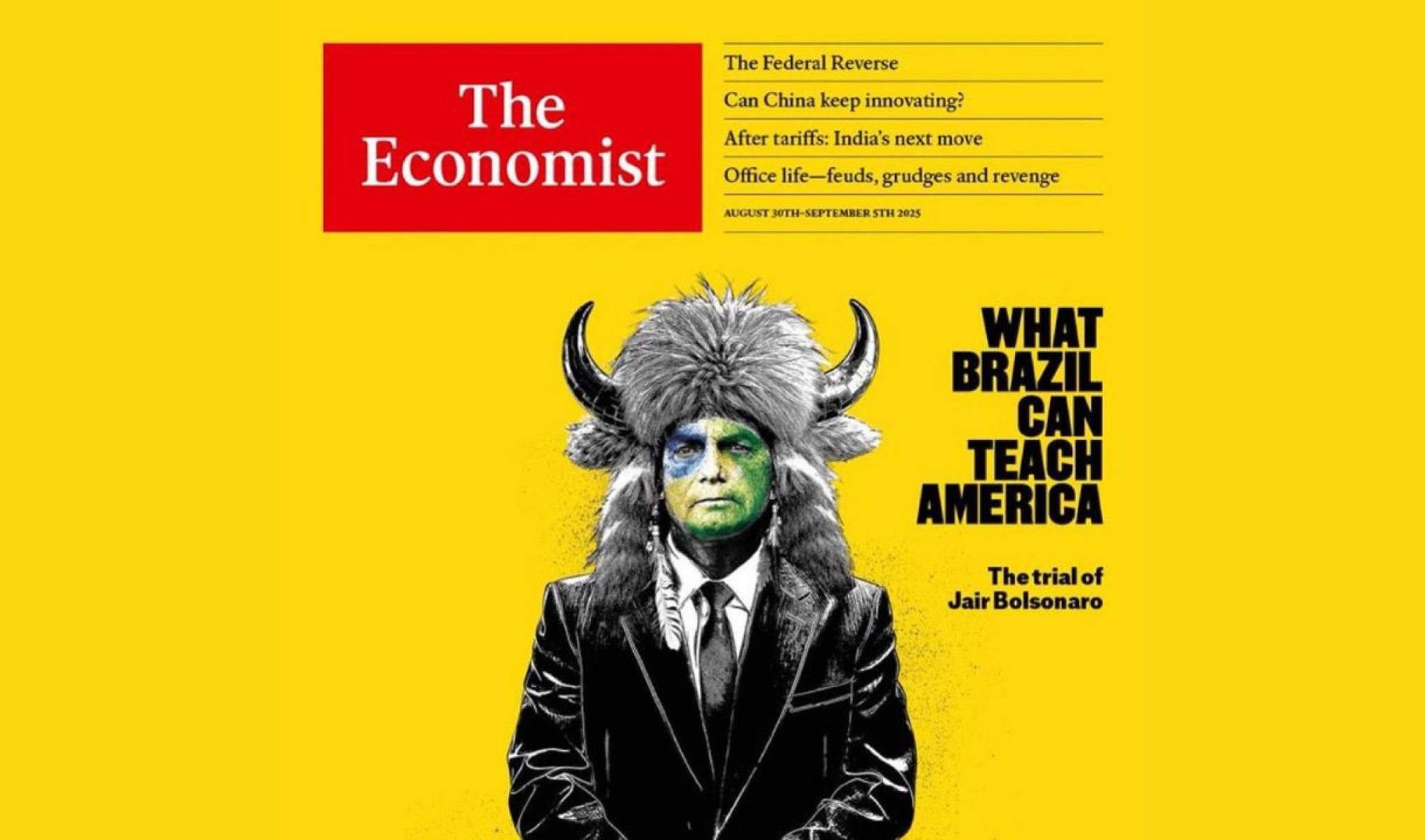 O julgamento do ex-presidente Jair Bolsonaro (PL) é destaque internacional nesta quinta-feira (28/8) com a capa da revista britânica The Economist. A publicação afirma que, se Bolsonaro for declarado culpado, o Brasil vai “oferecer aos Estados Unidos uma lição de maturidade democrática”, em um momento em que a maior democracia do hemisfério norte enfrenta acusações de corrupção e autoritarismo sob a liderança de Donald Trump.