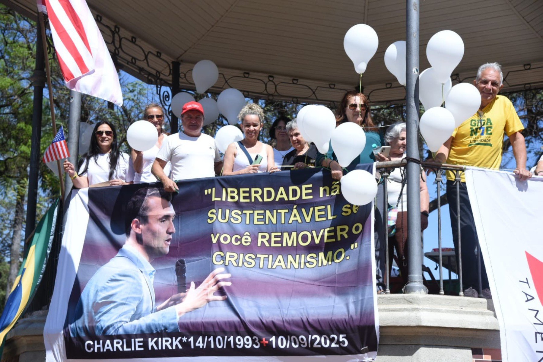 Paralelamente ao funeral, em Belo Horizonte, manifestantes levaram bandeiras do Brasil, balões brancos e cartazes com frases atribuídas ao influenciador de direita. Para eles, a homenagem era uma forma de se unir simbolicamente ao funeral nos Estados Unidos.