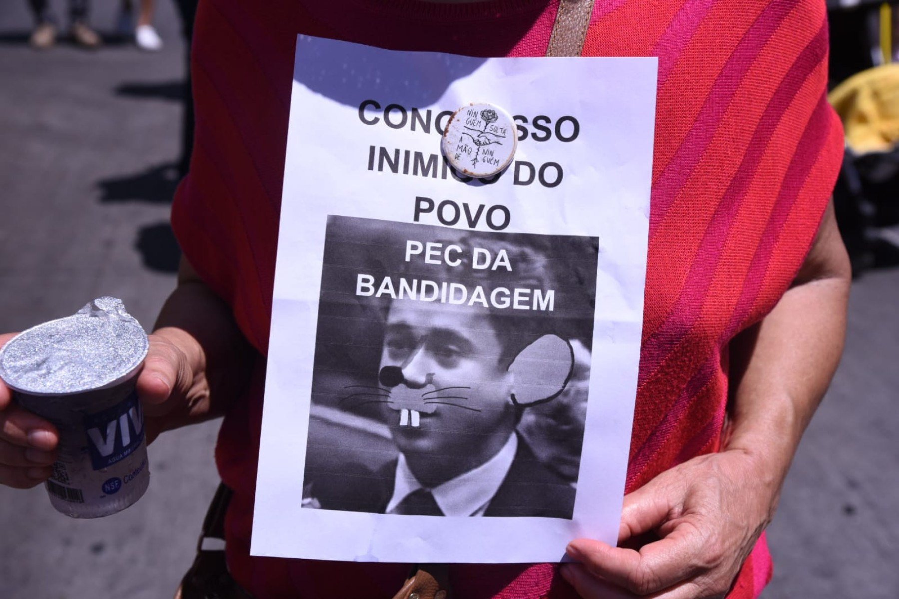 Na capital mineira, milhares de pessoas ocuparam a Praça Raul Soares, na Região Centro-Sul, e seguiram em caminhada até a Praça da Estação, no Centro. Cartazes levados pelos manifestantes traziam frases como “Congresso, inimigo do povo. PEC da bandidagem”, acompanhadas de imagens do parlamentar com a caricatura de um rato sobre seu rosto. O ato fez parte de uma mobilização nacional organizada por movimentos sociais, centrais sindicais e artistas, com forte adesão de lideranças políticas.