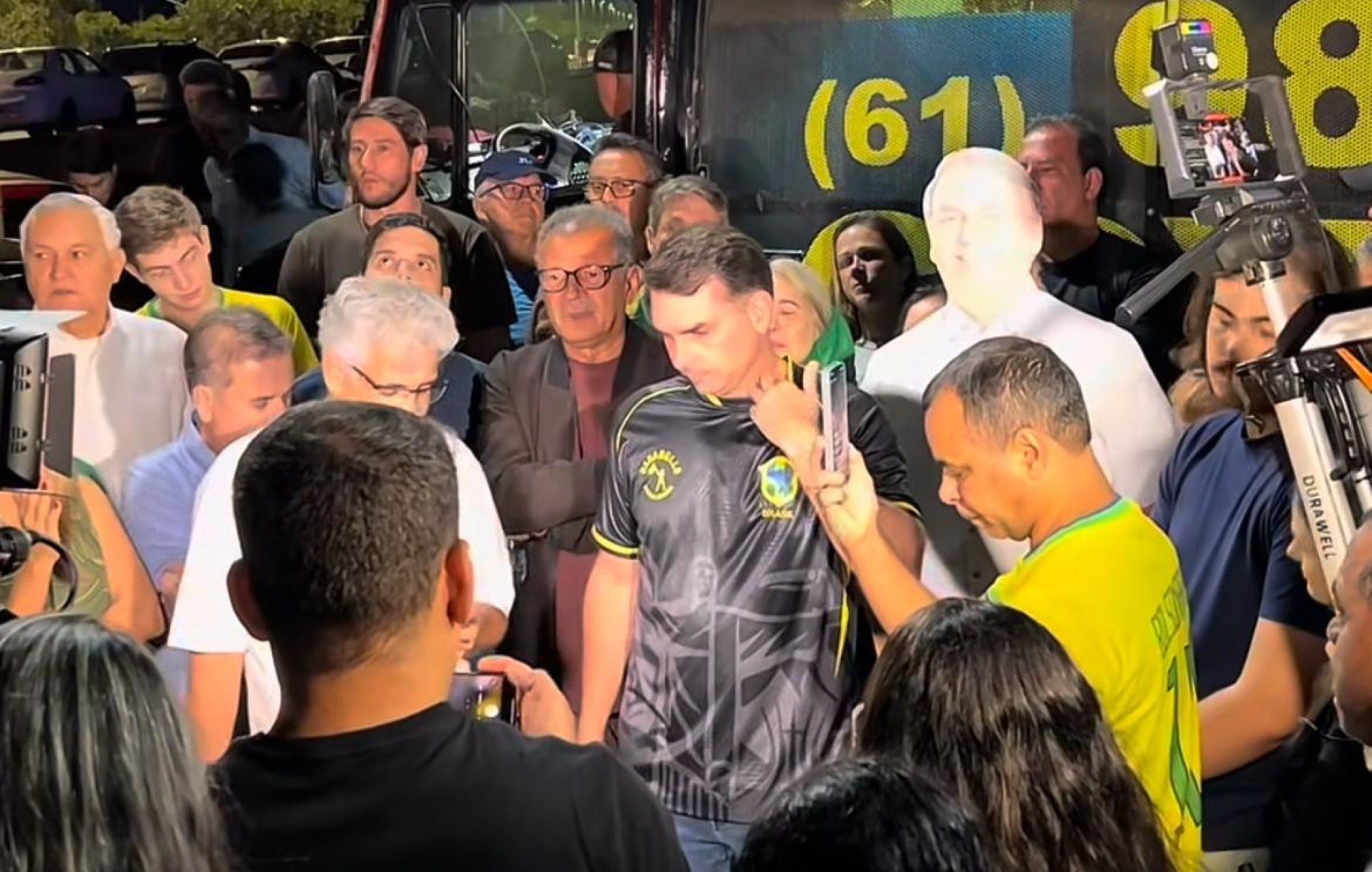 Em outra frente, eventos do PL multiplicaram banners e imagens de papelão do ex-presidente, desde que foi preso no início de agosto. Na vigília convocada pelo senador Flávio Bolsonaro (PL-RJ), no último dia 22, por exemplo, ele discursou e orou ao lado de uma imagem em tamanho real de papelão do pai.