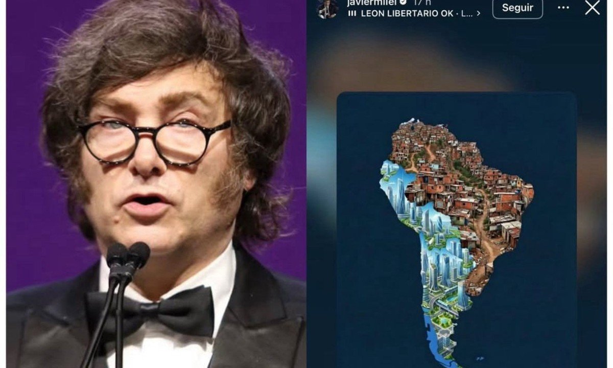A publicação foi feita neste fim de semana e faz referência ao cenário político da América do Sul, destacando países governados por lideranças de direita e liberais. A imagem circulou inicialmente em perfis alinhados ao governo argentino e foi republicada por Milei, acompanhada de uma legenda comemorando o que ele classifica como avanço da direita no continente.