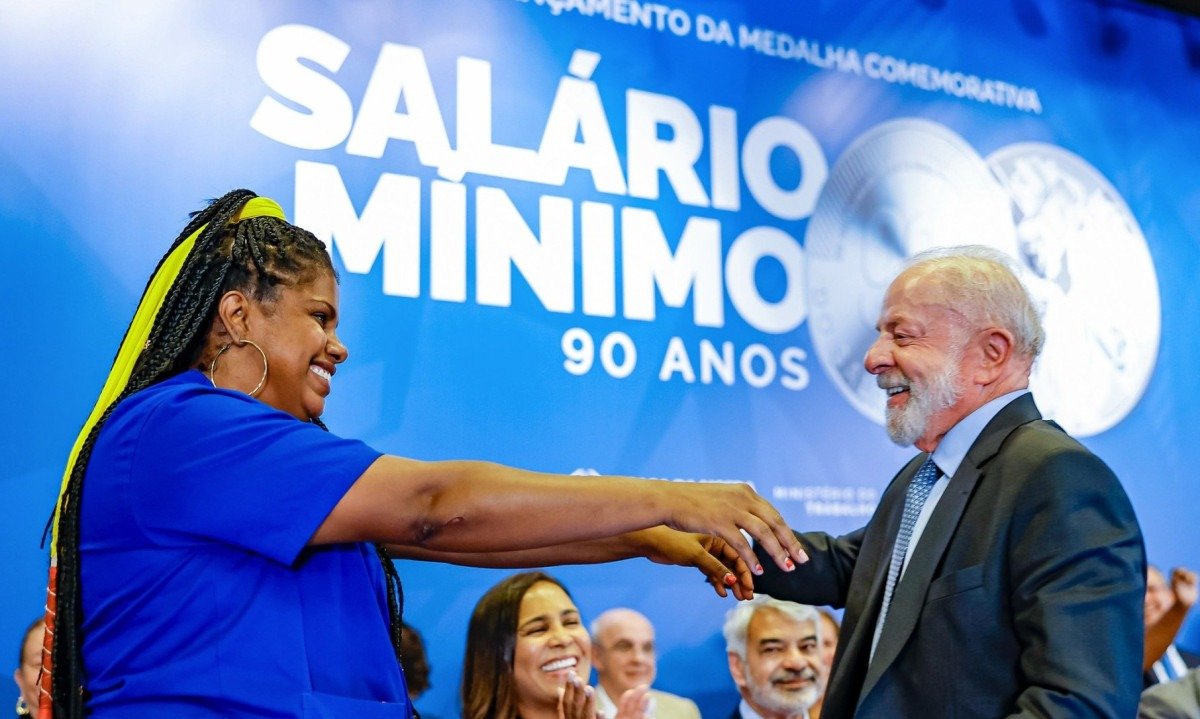 A cena ocorreu durante cerimônia que celebra os 90 anos da criação do salário mínimo. No evento, foi lançada uma medalha comemorativa.