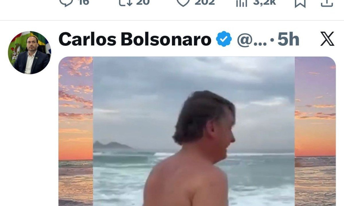 O ex-vereador Carlos Bolsonaro (PL-RJ) usou as redes sociais para comentar a prisão do ex-presidente Jair Bolsonaro (PL). Em publicação, afirmou que o pai “gosta muito do mar” e questionou “quando poderá ver o mar de novo”, em referência ao período em que Bolsonaro permanece na cadeia.
