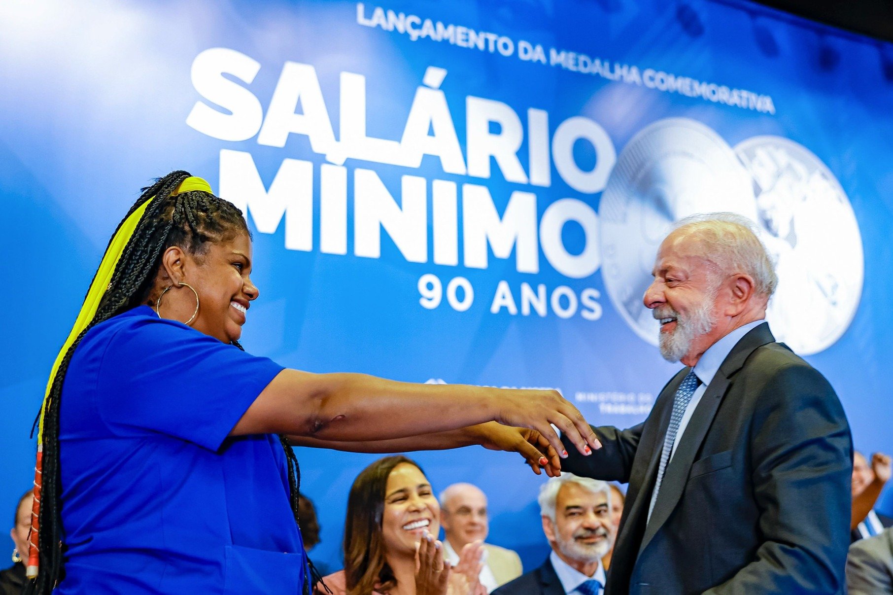 A cena ocorreu durante cerimônia que celebra os 90 anos da criação do salário mínimo. No evento, foi lançada uma medalha comemorativa.