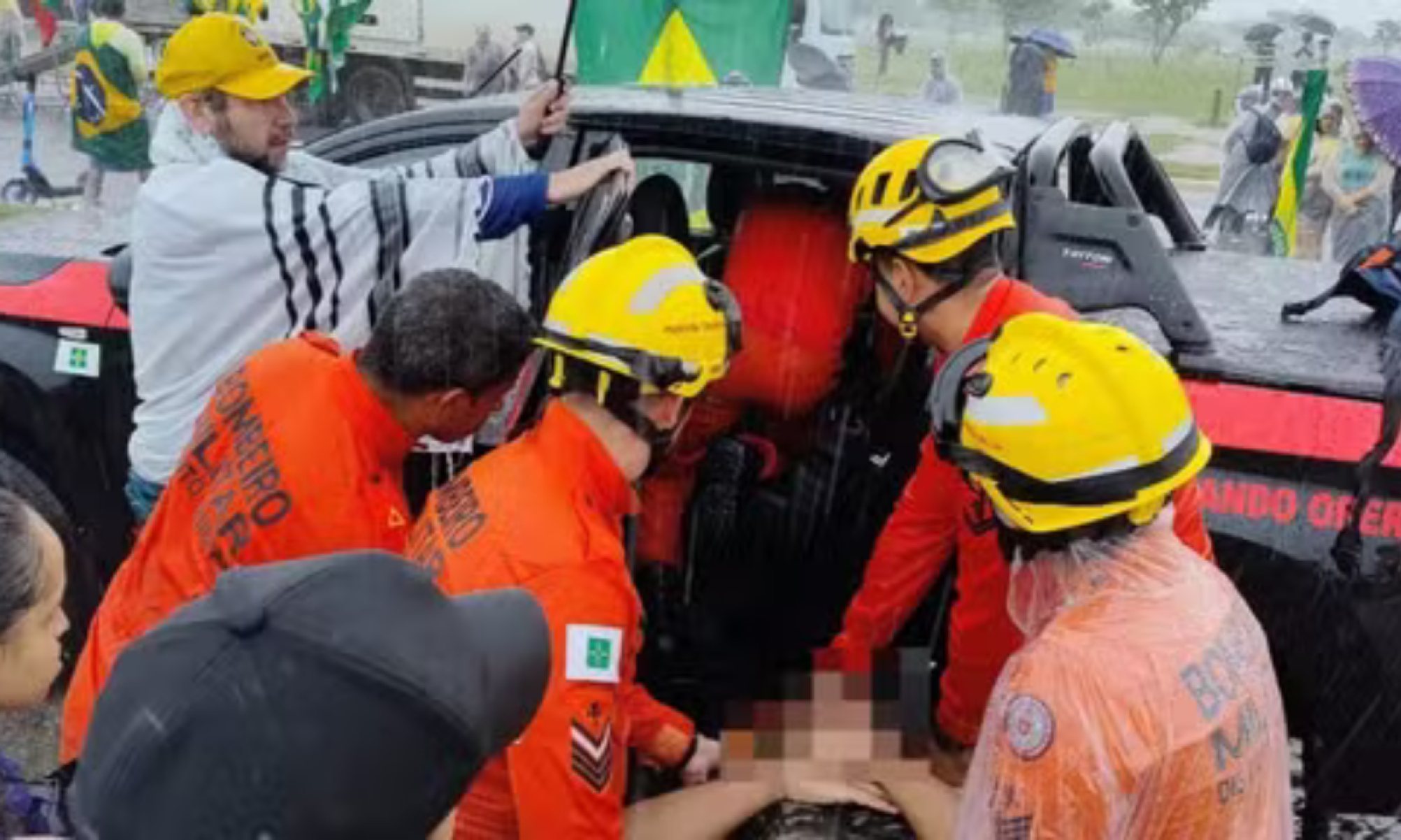 Pouco antes das 13h, equipes do Corpo de Bombeiros Militar do Distrito Federal foram acionadas para atender a ocorrência. Imagens que circularam nas redes sociais mostram pessoas sendo carregadas por outros participantes do ato em busca de atendimento médico.