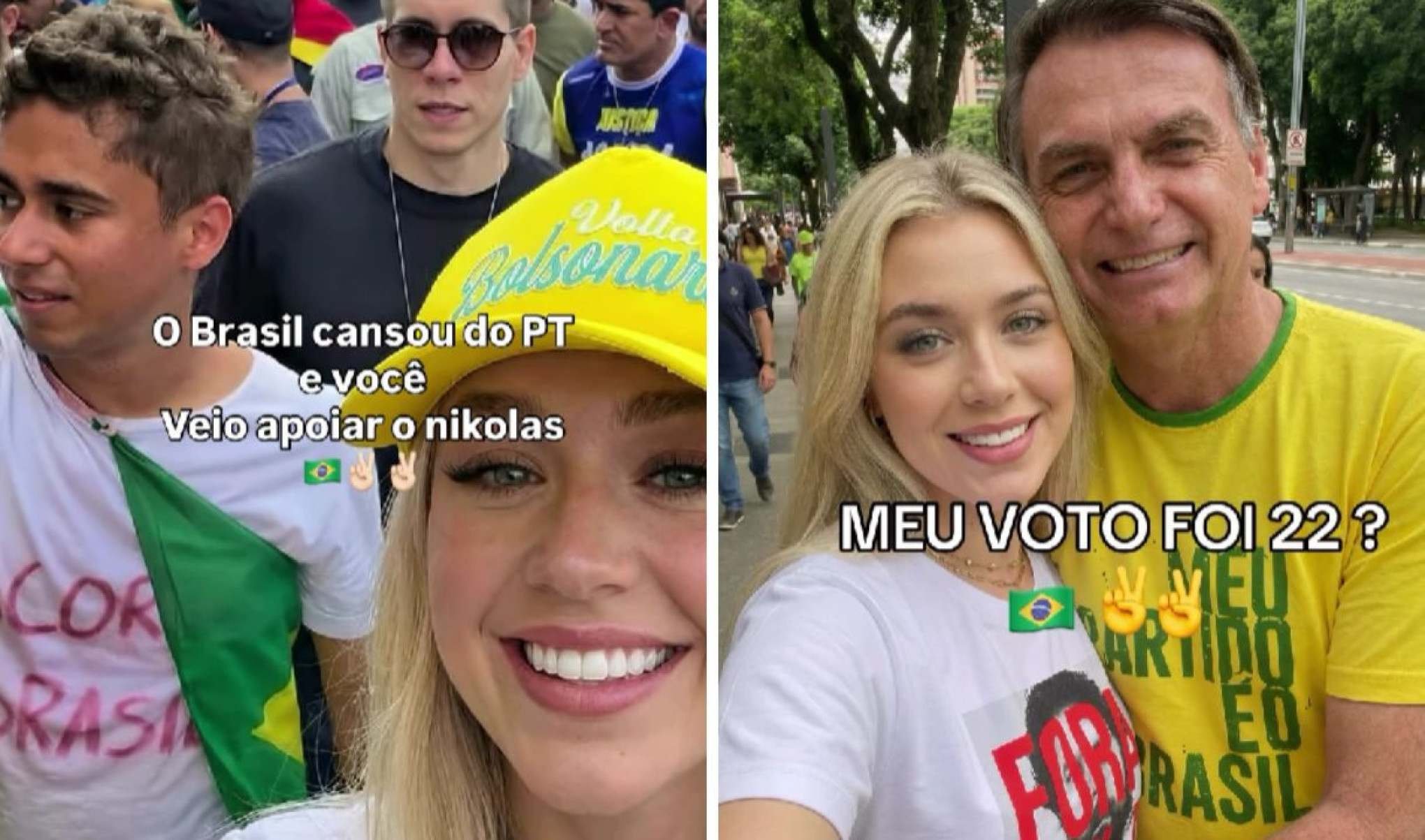 O caso da “gótica de direita” não é isolado. Outros perfis com características semelhantes têm circulado nas redes sociais. Um deles se apresenta como Michele Bonato, descrita como “patriota preferida”, de 23 anos. A conta também mistura discurso político, incluindo um vídeo ao lado de Bolsonaro e uma foto na caminhada de Nikolas, ao lado do deputado.