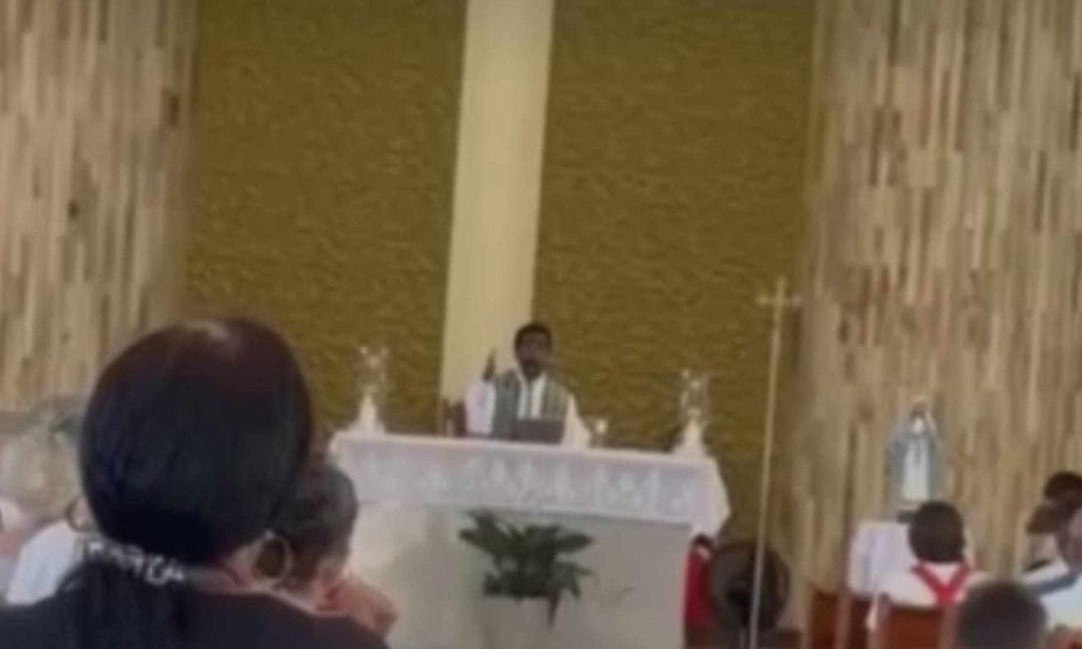 Em vídeo que viralizou nas redes sociais, o religioso critica o parlamentar mineiro durante a homilia. “Tem gente católica concordando com o Nikolas. Vou falar mais uma coisa grave: se você concorda com o Nikolas, que não quer que ‘dá’ o botijão de gás para o pobre, por favor, saia da igreja agora. Você não merece receber a Eucaristia”, disse.