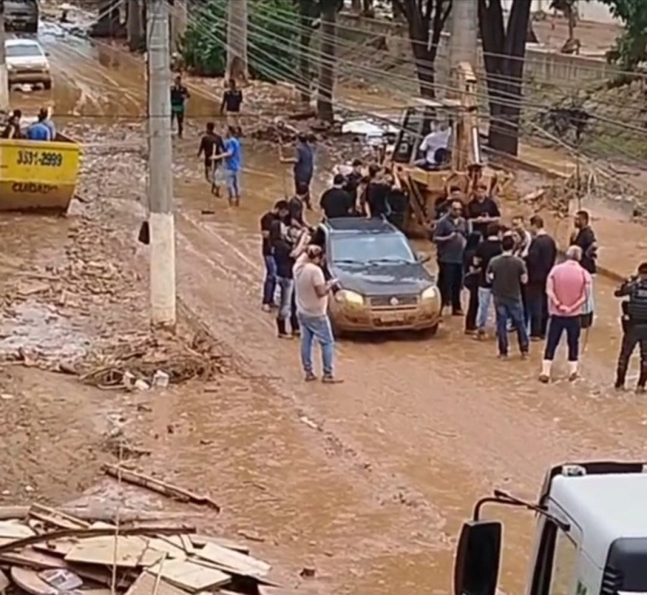 Nas imagens, gravadas da sacada de um imóvel, localizado em frente a um rio que transbordou, é possível ver o deputado, cercado de assessores, e sendo gravado por alguém, em uma via lotada de lixo e entulho de enchente, enquanto o trânsito estava interrompido.