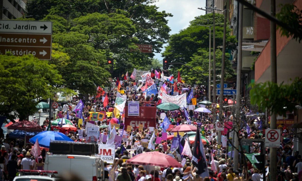 A cobrança por mais recursos para políticas públicas de proteção às mulheres e pela criação de uma Secretaria Municipal da Mulher em Belo Horizonte marcou o protesto do Dia Internacional de Luta das Mulheres realizado neste domingo (8/3) na capital mineira. O ato reuniu participantes na Praça Raul Soares, na Região Centro-Sul de BH, e seguiu em marcha pela Avenida Amazonas, em uma mobilização que reforçou a pressão sobre governos e o parlamento por mais investimento no enfrentamento à violência de gênero.