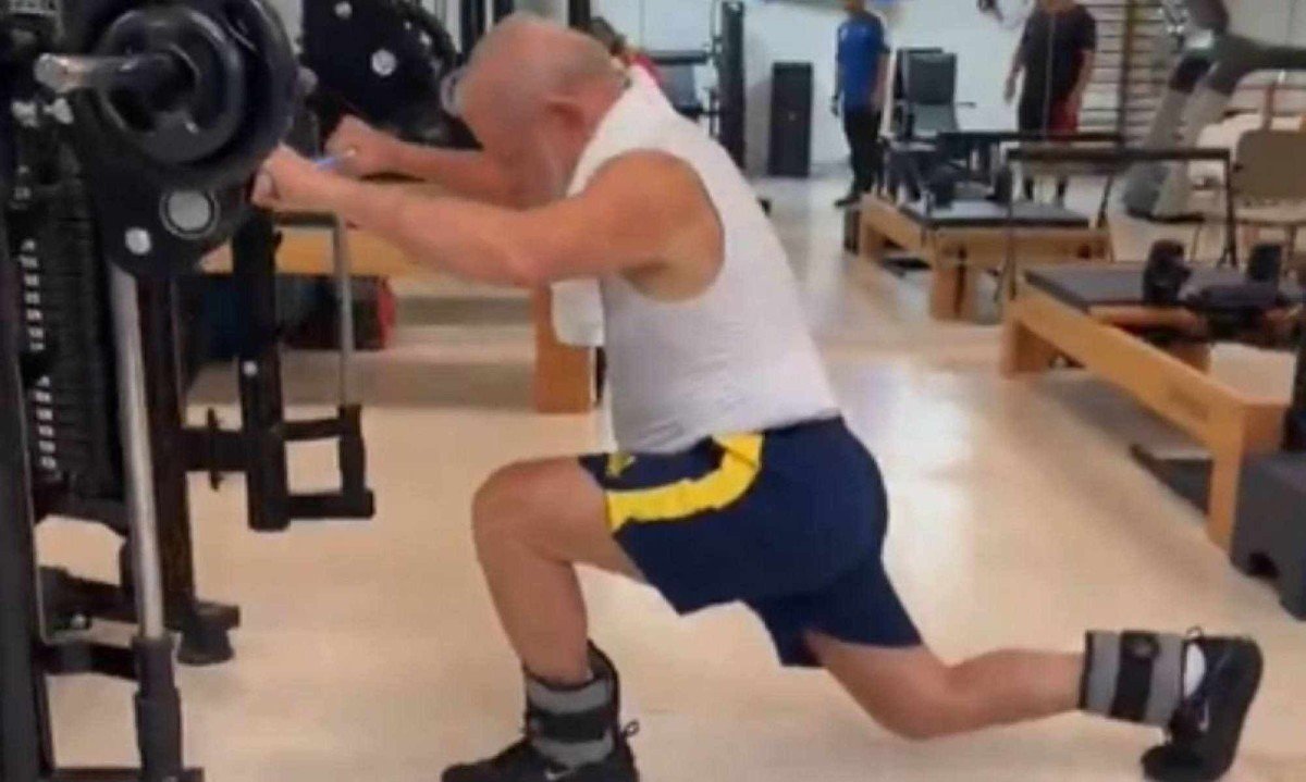 O treino de Lula inclui flexões, agachamento livre e afundo. “Começando a semana forte, né, amor?”, diz Janja. “Quem quiser viver até 120 anos, tem que fazer o que eu faço”, brincou o presidente.