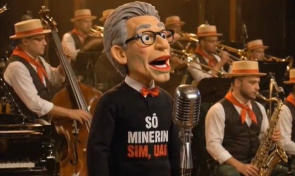 A peça conta com um boneco, estilizado como Romeu Zema, que usa uma camisa com os dizeres: “Sô mineirin sim, uai”, e canta uma música com uma banda, que também foi feita com IA, tocando ao fundo.