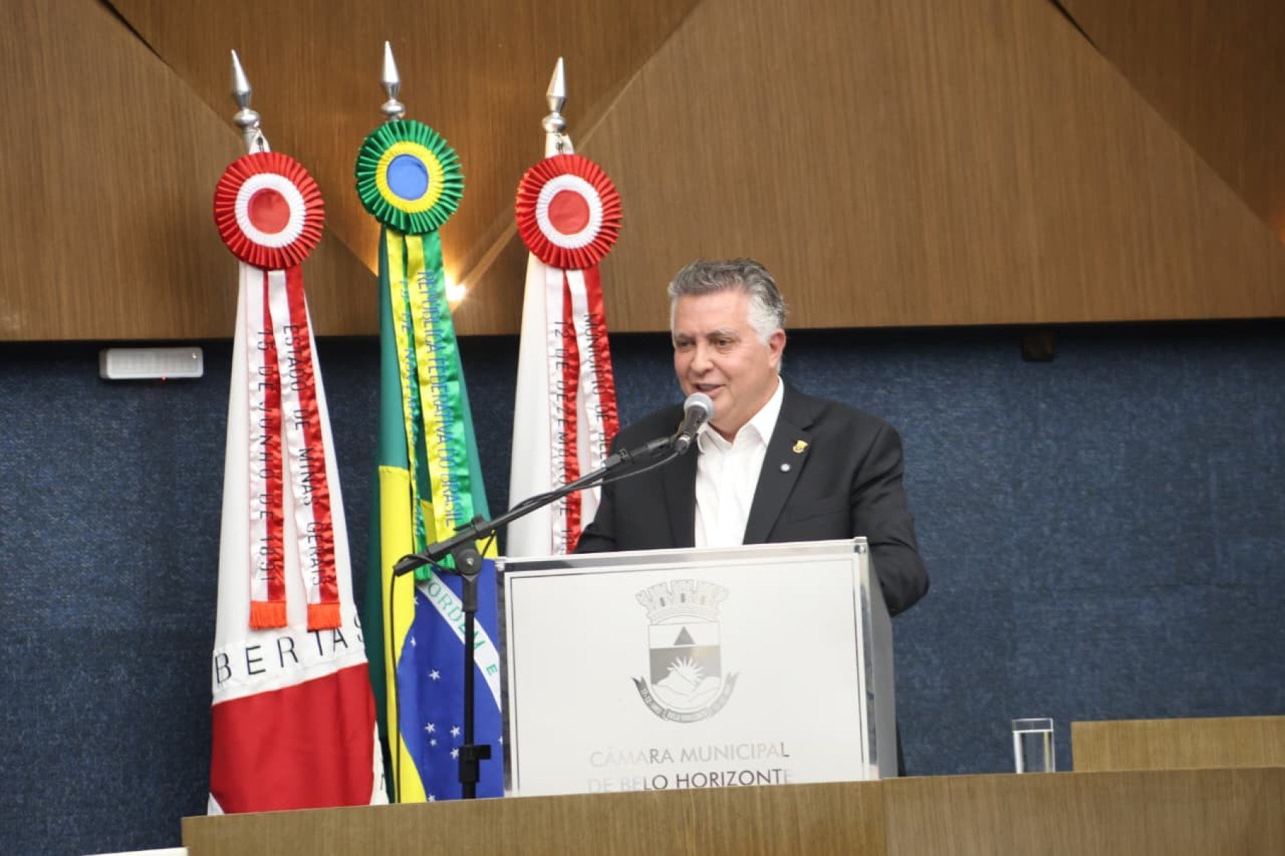 Em discurso, o prefeito destacou a relação com o Legislativo e relembrou a trajetória política na Casa. “A Câmara Municipal de Belo Horizonte faz parte da minha história”, afirmou, ao mencionar os dois mandatos como vereador e o vínculo com parlamentares e servidores.