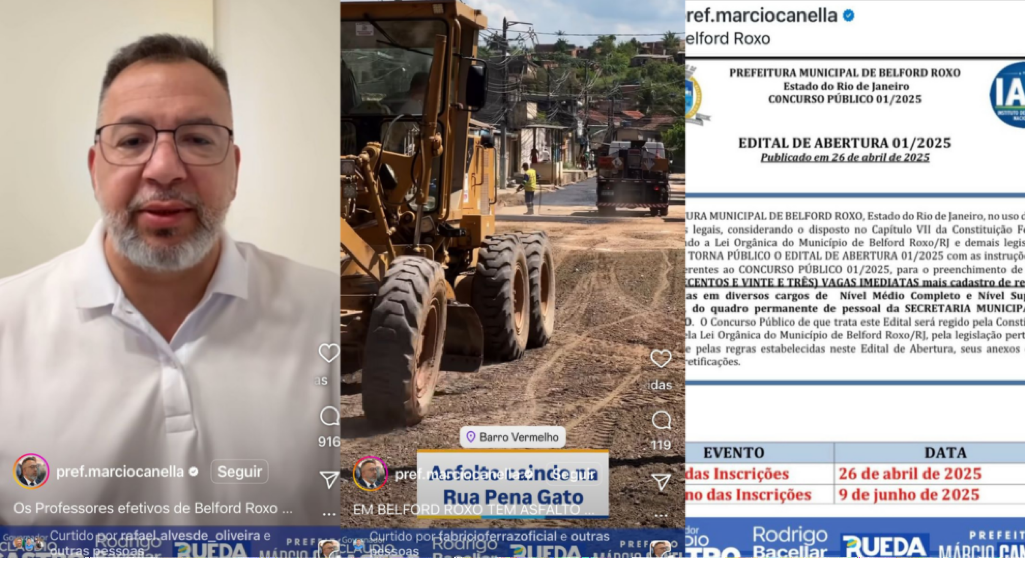 Todas as postagens do prefeito de Belford Roxo (RJ), Marcio Canella, tem o nome de candidatos do União Brasil ou que farão parte de uma futura coligação eleitoral em 2026.