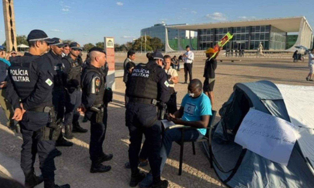 À coluna, uma oficial da PMDF disse que a barraca terá que ser removida porque é proibida qualquer estrutura metálica na Esplanada dos Ministérios.