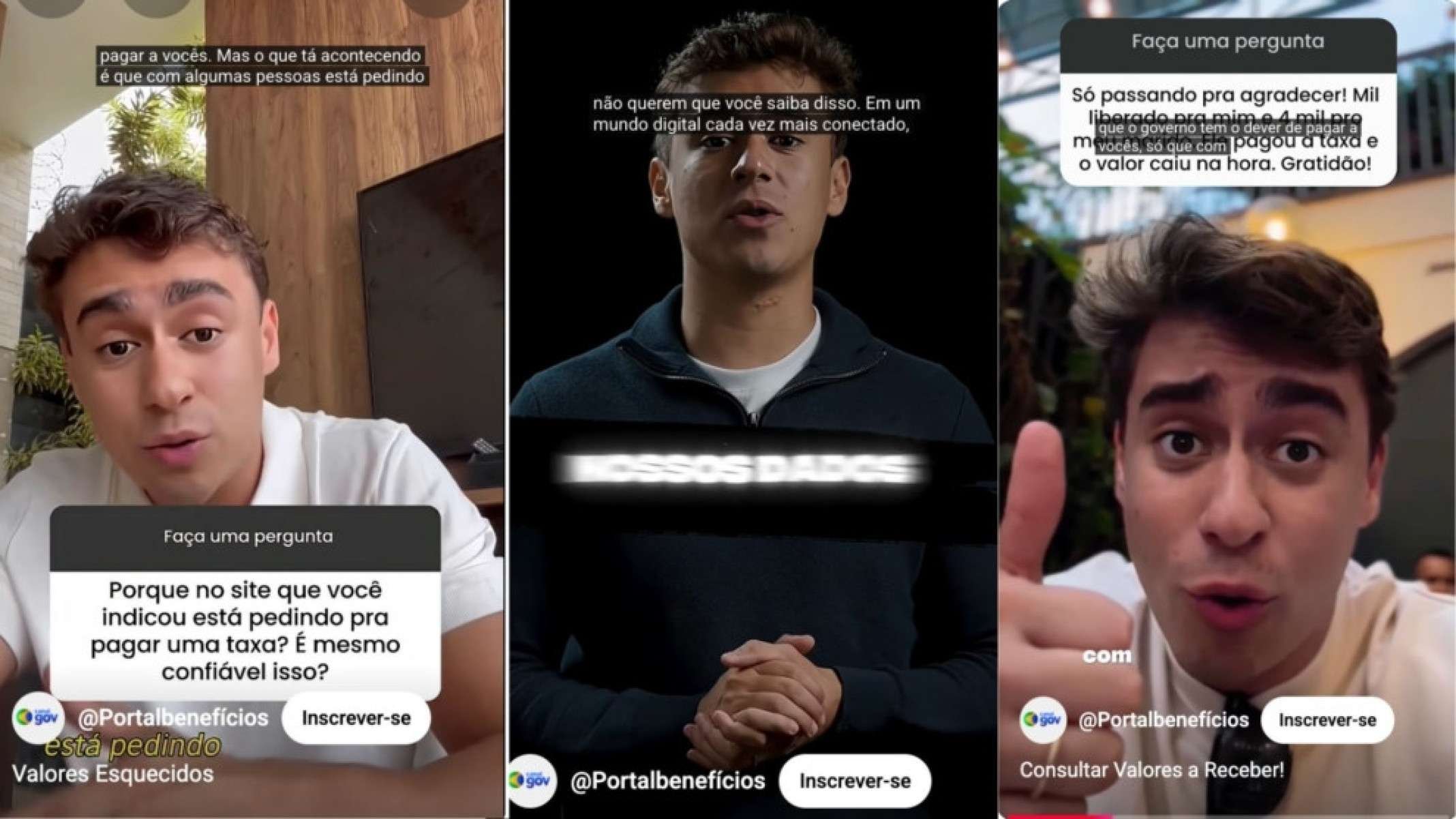 A imagem de Nikolas é usada em outros dois vídeos manipulados por Inteligência Artificial pelo mesmo canal no YouTube, chamado Portalbeneficios. O canal que induz os espectadores ao erro usa ainda a logomarca do governo brasileiro.