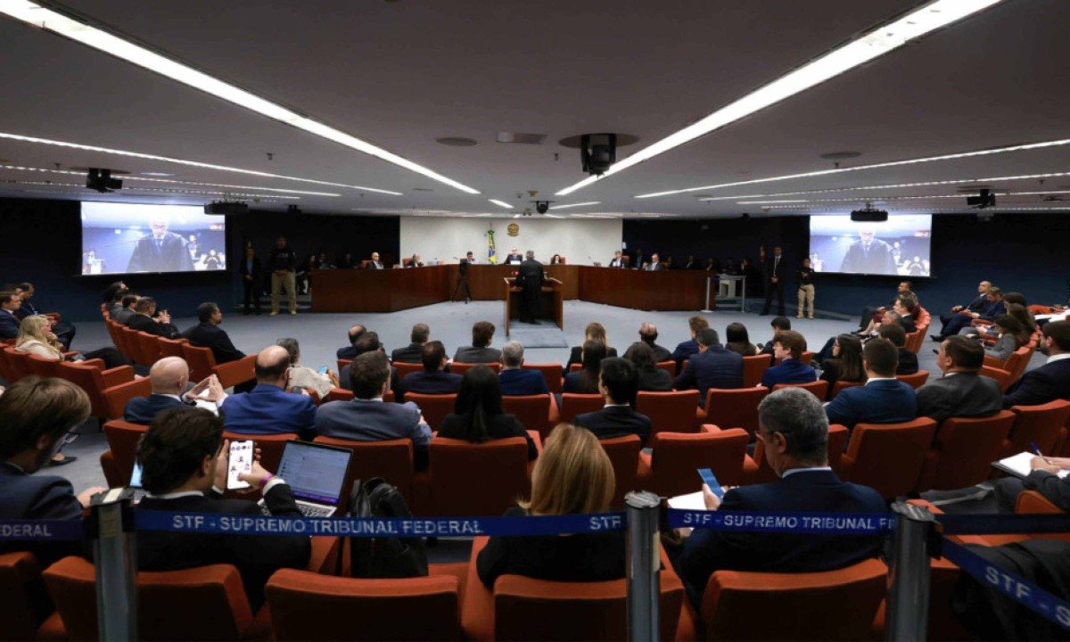 Enquanto os advogados falavam, parte da bancada de ministros se mantinha atenta — mas sem abrir mão do café. Alexandre de Moraes, Cármen Lúcia e Flávio Dino iniciaram a sessão com xícaras na mão.