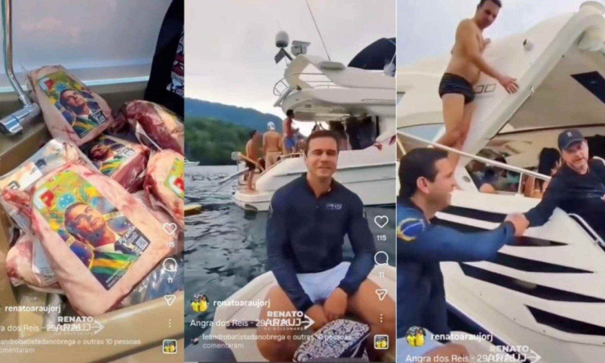 Amigo de Jair Bolsonaro, o empreiteiro fluminense Renato Araújo saiu distribuindo a “picanha do Flávio” para eleitores que curtiam o pré-feriado, na segunda-feira, 29, em lanchas em Angra dos Reis, no litoral do Rio. O corte de carne era embalado com uma foto do senador, nos mesmos moldes de um lançamento anterior, a “picanha de Bolsonaro”, pelo frigorífico Goiás, apoiador dos bolsonaristas. A ação foi gravada em vídeo e publicada no Instagram, mas apagada pouco depois.