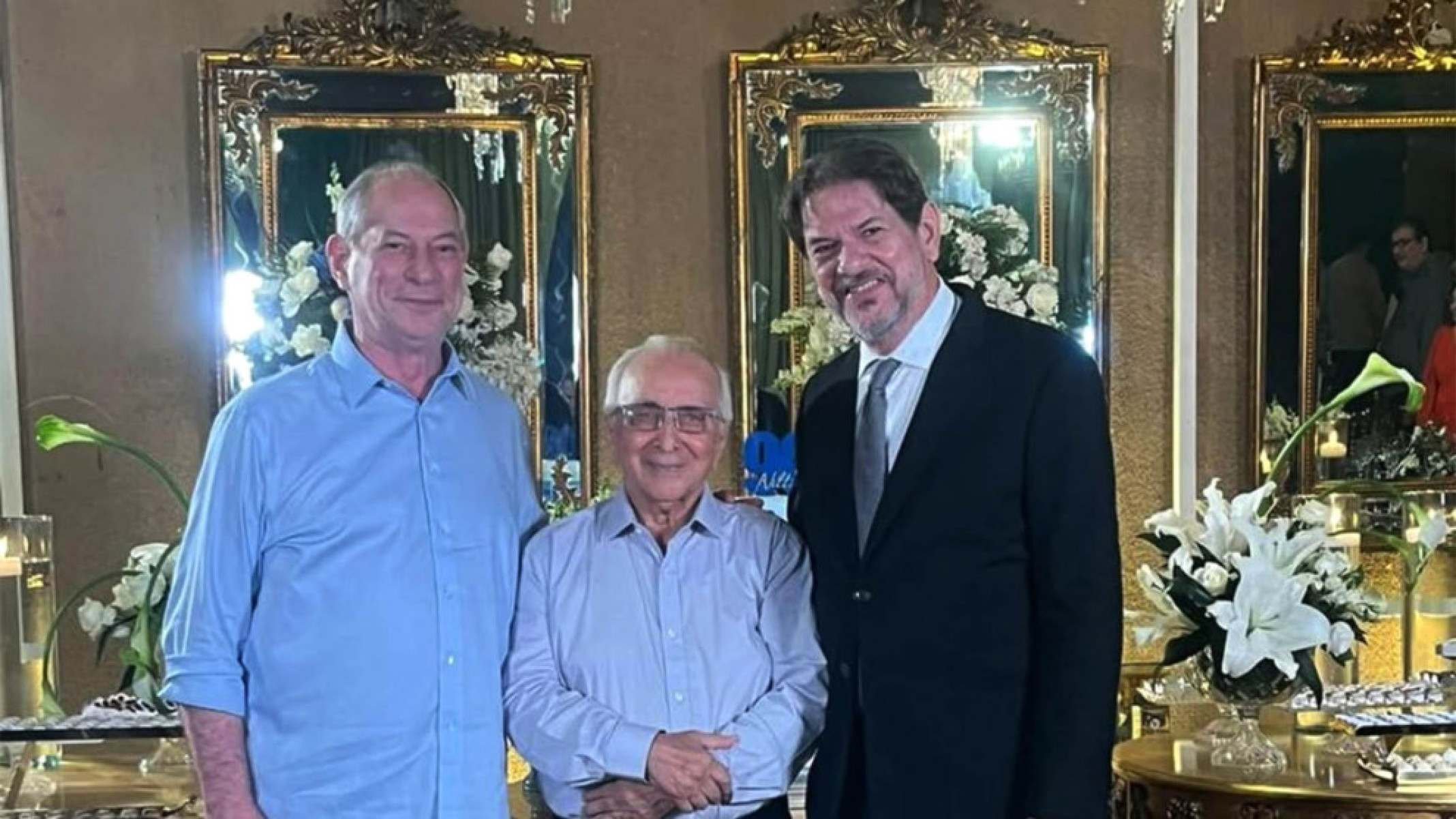 Os irmãos Ferreira Gomes foram cordiais ao se encontrarem há pouco mais de dez dias na festa de aniversário de 81 anos de Nilton Vieira, marido de uma prima considerada irmã pelos dois políticos. Depois de longo período de esfriamento nas relações, eles se deixaram fotografar juntos, ladeando o aniversariante.