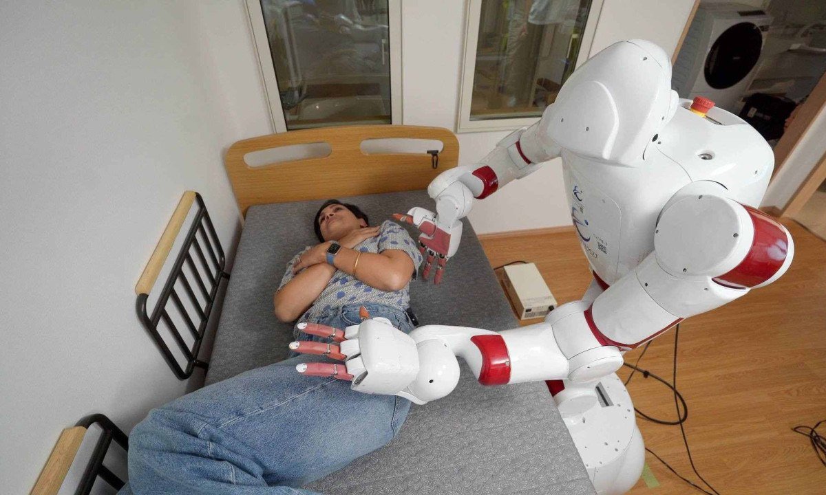 Enquanto isso, pesquisadores da Universidade Waseda (Japão) desenvolvem o AIREC, um robô humanoide de 150 kg projetado para ser um cuidador "do futuro". Ele pode ajudar a calçar as meias, mexer os ovos e dobrar as roupas. Os cientistas esperam que, no futuro, o AIREC possa trocar fraldas geriátricas e prevenir escaras — lesão na pele causada por pressão contínua em pessoas acamadas ou com mobilidade reduzida.