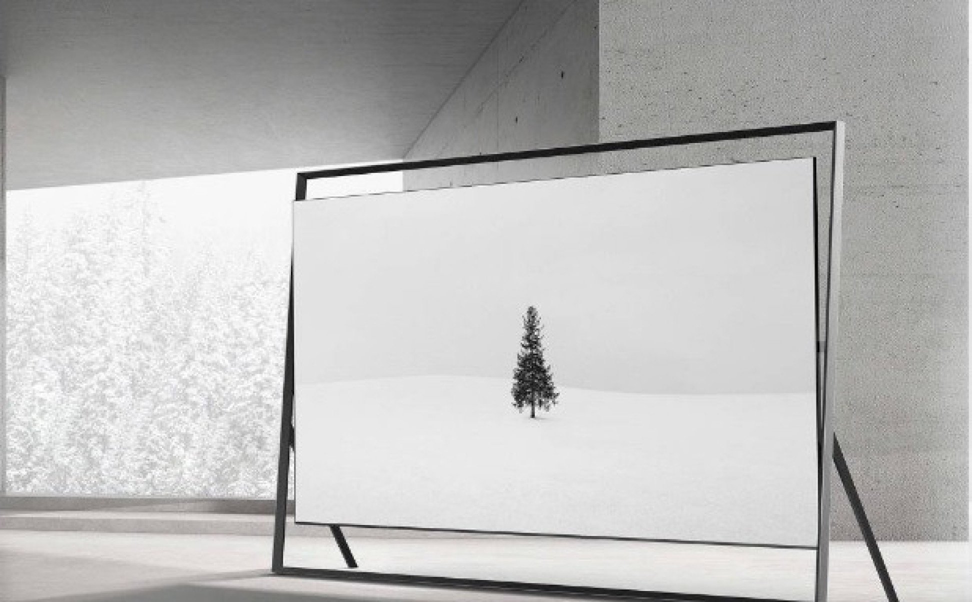 Segundo a fabricante, o aparelho foi intencionalmente projetado para parecer menos uma televisão e mais "uma vasta janela imersiva que expande visualmente o ambiente".