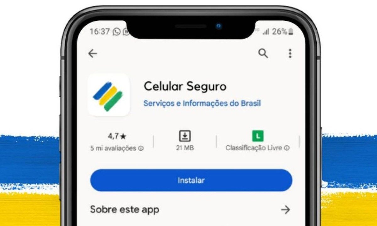 Cadastro inicial: baixe o aplicativo “Celular Seguro” na loja oficial do seu smartphone. O acesso é feito com a mesma conta Gov.br utilizada em outros serviços do governo.