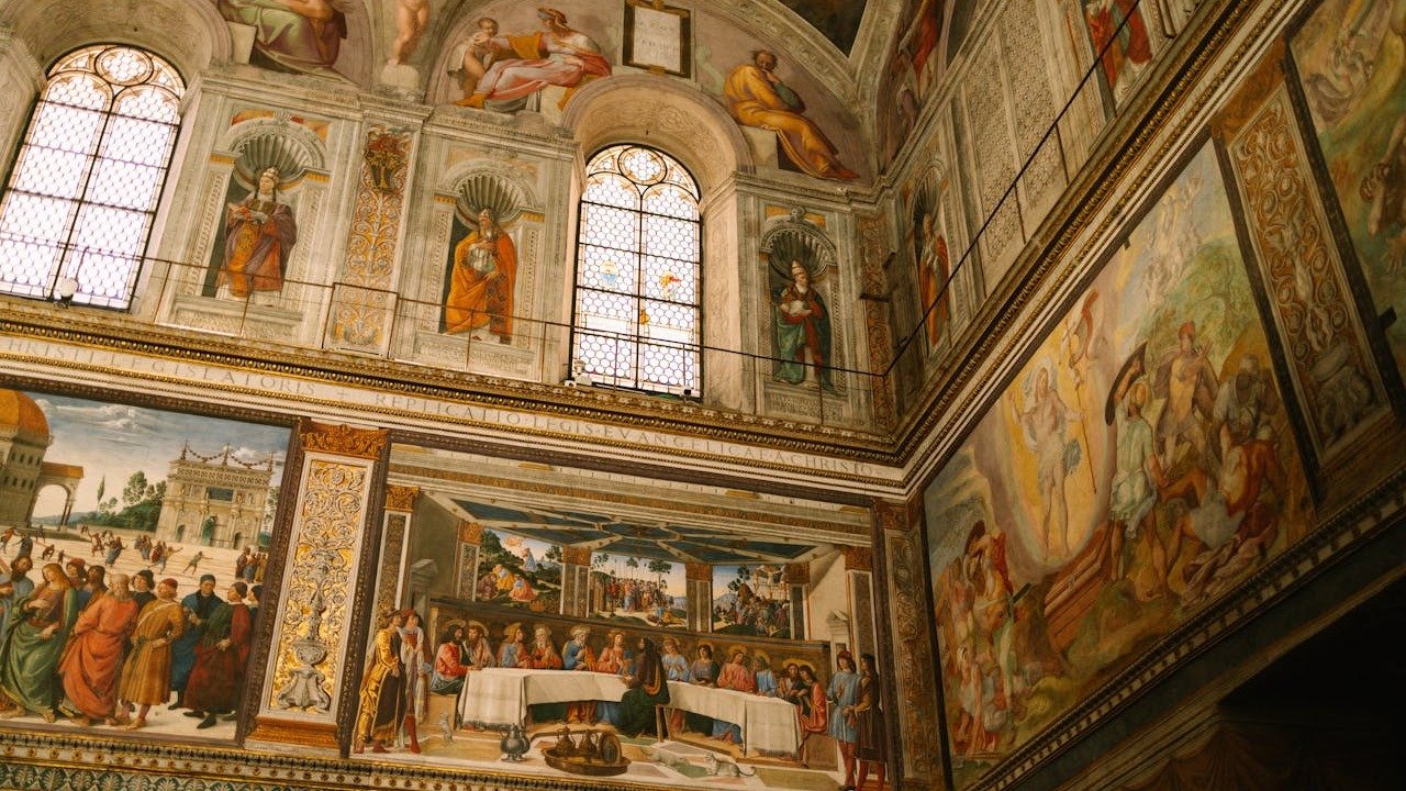 O Vaticano disponibiliza um dos tours virtuais mais completos e impressionantes. É possível "caminhar" pela Capela Sistina e admirar o teto pintado por Michelangelo em detalhes, com a possibilidade de aproximar a imagem para ver cada afresco. O passeio se estende a outras áreas, como a Basílica de São Pedro, permitindo uma imersão na riqueza artística e religiosa do local.