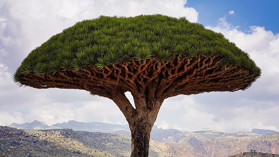 Considerada um dos lugares mais alienígenas da Terra, a Ilha de Socotra abriga uma flora única. A árvore-sangue-de-dragão, com seu formato de guarda-chuva e seiva vermelha, parece pertencer a outro planeta, assemelhando-se à vegetação exótica e gigante de Pandora.