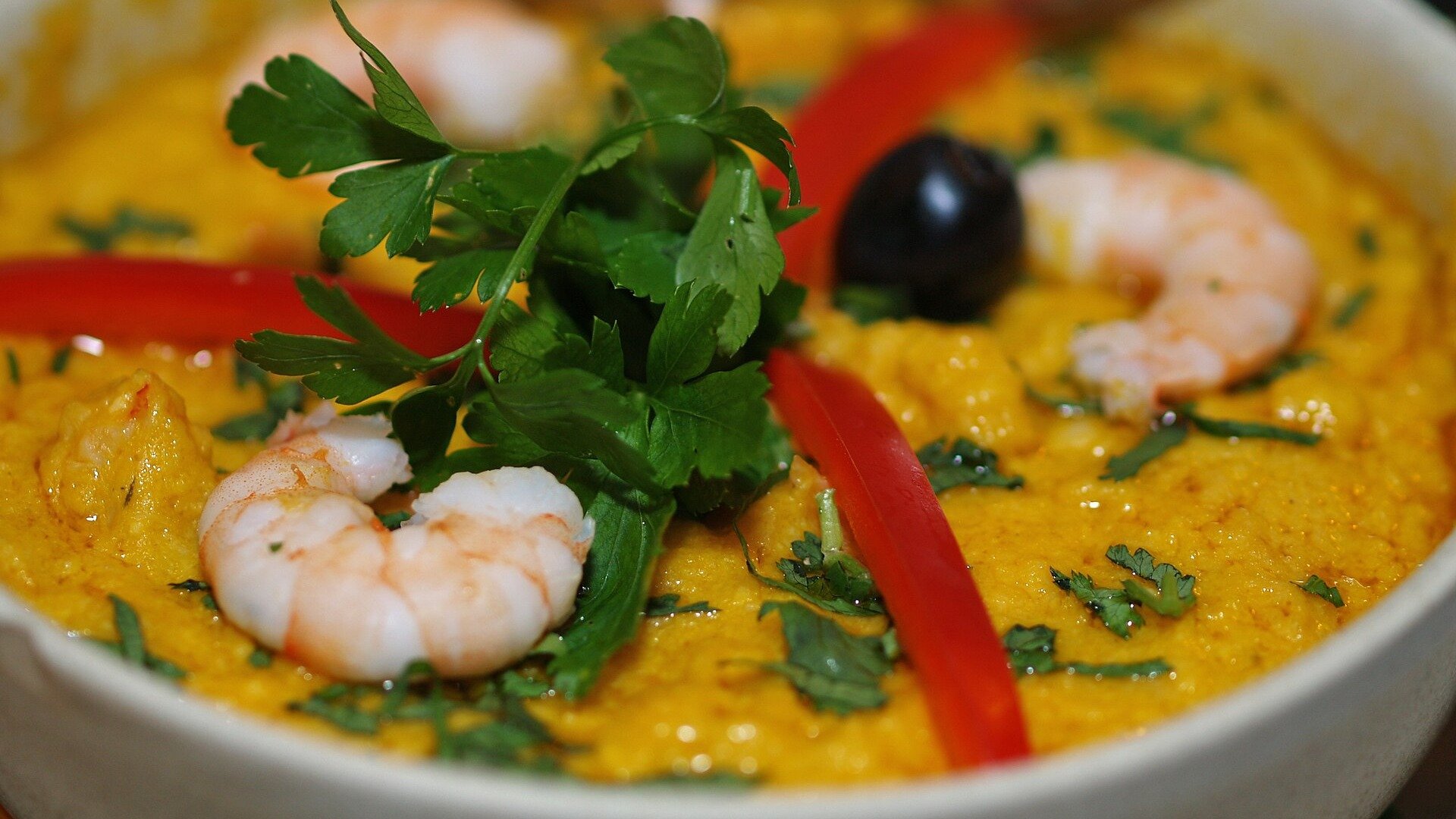 Embora seja um acompanhamento famoso do acarajé, o vatapá brilha como prato principal. Trata-se de um creme denso feito com pão amanhecido ou farinha de rosca, camarão seco, leite de coco, amendoim, castanha de caju e, claro, azeite de dendê. Com uma textura única e um sabor complexo e levemente picante, é a prova de como ingredientes simples podem se transformar em uma receita sofisticada.