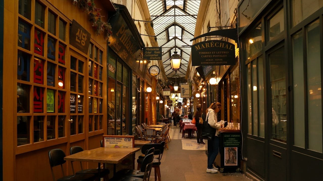 Passage des Panoramas: uma das mais antigas passagens cobertas de Paris, construída em 1799. Seu charme histórico é evidente no piso de mosaico e no teto de vidro. O local abriga lojas de selos, restaurantes tradicionais e artesãos, transportando os visitantes para outra época.