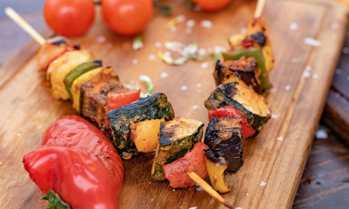 Surpreenda seus convidados com opções deliciosas como espetinho de legumes, queijo coalho com mel e até hambúrguer de plantas para churrasqueira