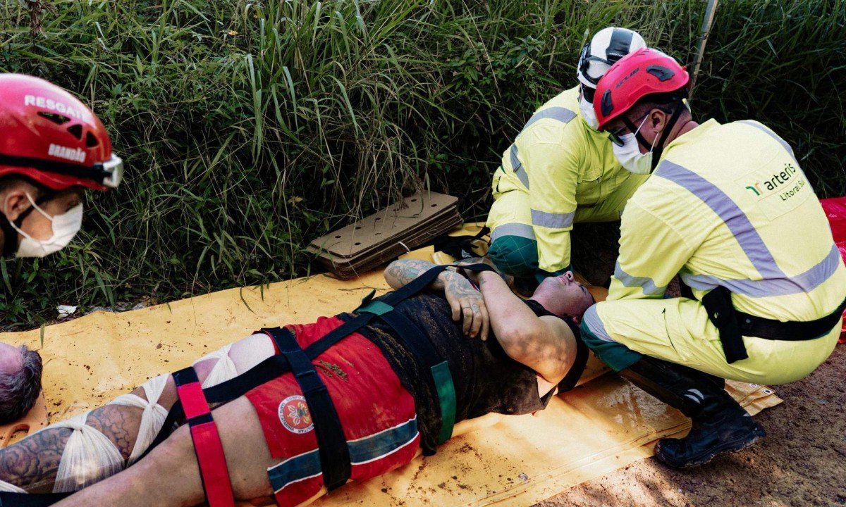 A primeira atitude, caso esteja consciente, é verificar a própria condição e a de outras possíveis vítimas. Peça ajuda e acione imediatamente o socorro médico pelo número 192 (SAMU) ou 193 (Corpo de Bombeiros). Se conseguir se mover, procure um local seguro para evitar um novo acidente, como a calçada.