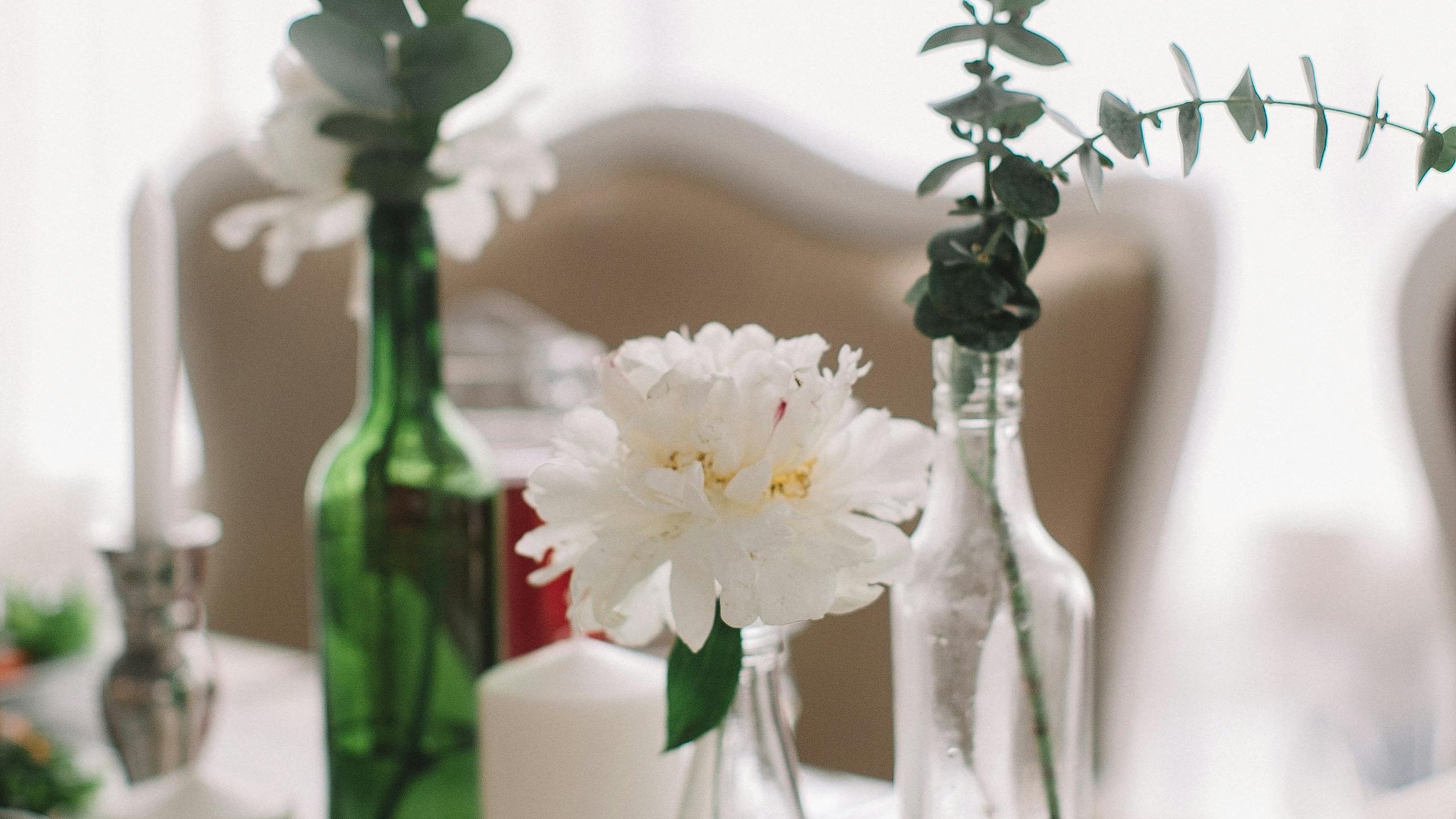 Garrafas de vinho, suco ou azeite são perfeitas para se tornarem vasos elegantes. Basta remover os rótulos e usá-las para abrigar uma única flor ou pequenos ramos. Para um visual diferente, pinte-as por dentro com tinta acrílica ou enrole barbante de sisal na parte externa. Outra opção é transformá-las em luminárias, inserindo um fio de luzes de LED a pilha dentro delas. Opte por luzes de LED, pois são seguras e não aquecem o vidro.Potes de conserva como organizadores