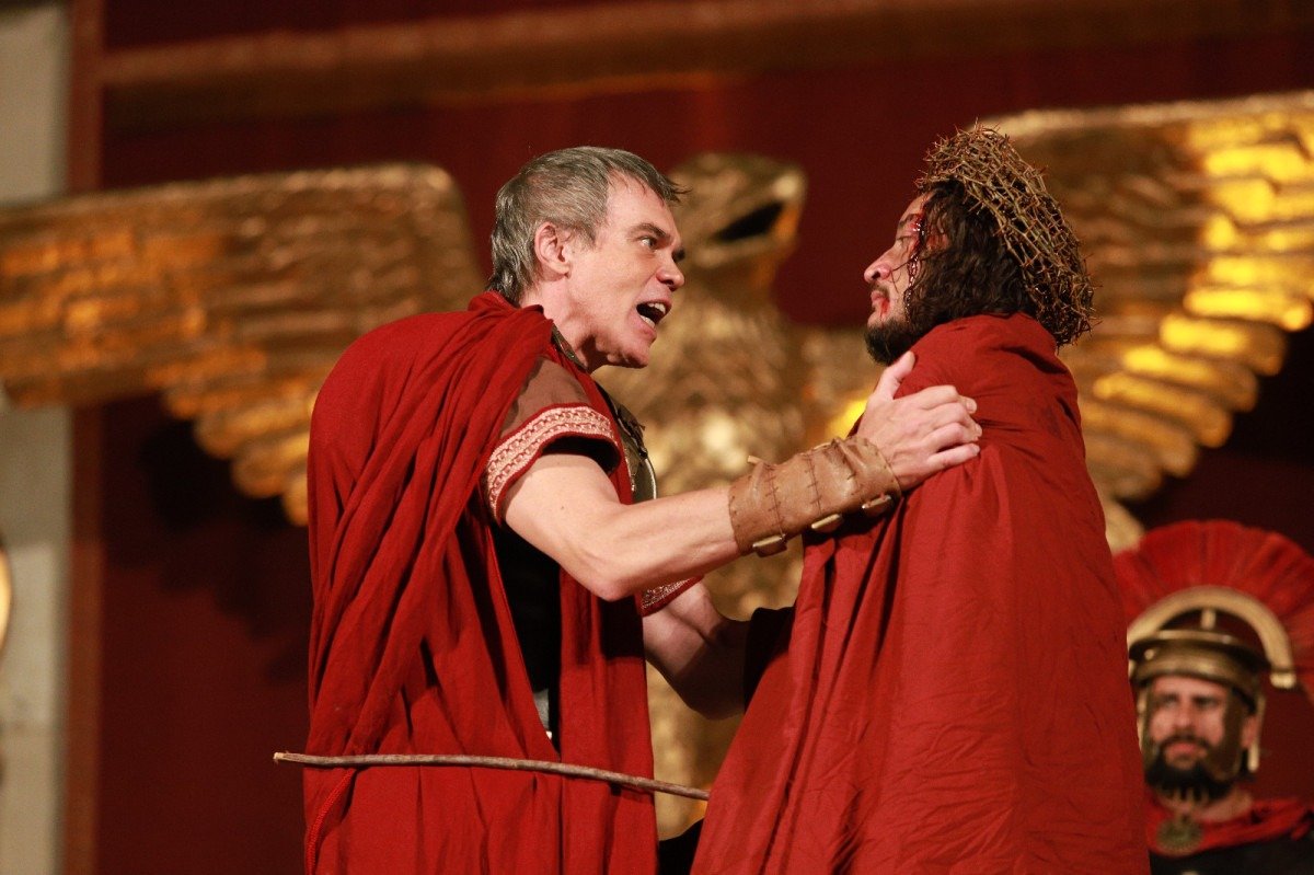 A talentosa Mayana Neiva trouxe uma profundidade tocante ao papel de Maria, a mãe de Jesus. Sua expressão de dor e esperança ressoou com o público, capturando a essência da figura materna que testemunhou o sofrimento de seu filho com uma mistura de amor inabalável e angústia indizível. Enquanto isso, Dalton Vigh personificou com maestria o papel ambíguo e complexo de Pilatos, o governador romano. Sua interpretação mostrou as nuances do poder e da indecisão, destacando os conflitos morais enfrentados por aqueles envolvidos na trama da Paixão.