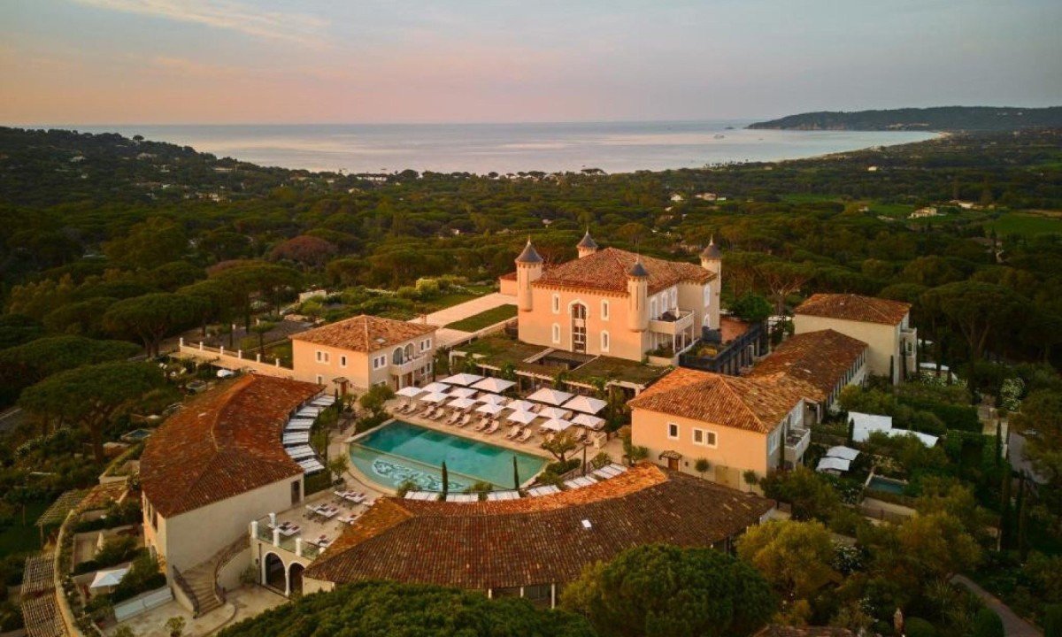 Localizado no alto de uma colina, o Château oferece vistas panorâmicas deslumbrantes da Baía de Saint-Tropez e do Mar Mediterrâneo, cercado por 13 hectares de pinheiros e ciprestes. Construído no século 19 como um palácio, foi transformado em hotel de luxo na década de 1920 e, após uma restauração completa, reabriu em 2021 como parte do seleto grupo Airelles Collection.