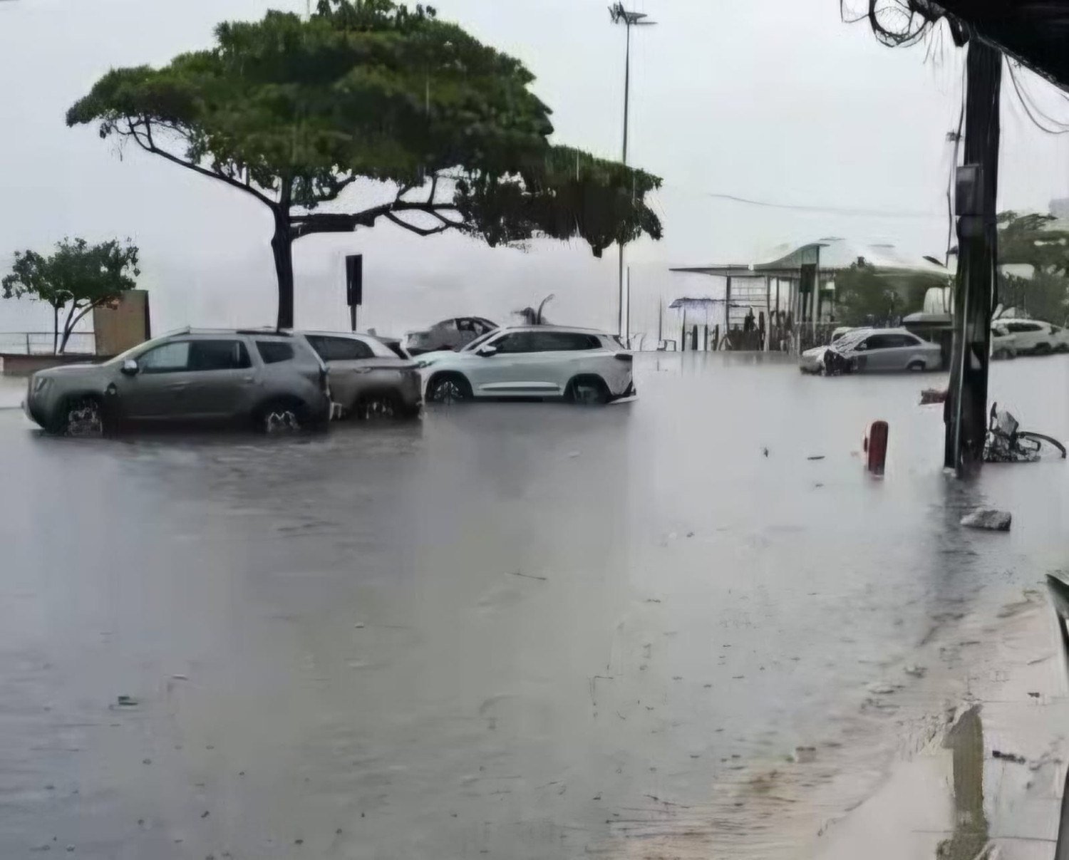 Devido à chuva intensa que atingiu a região, ruas e trechos da orla, como a Avenida Beira Mar e arredores, se transformaram em verdadeiros rios, com água acumulada em alto volume invadindo calçadas, vias e praças próximas (como a Praça da Paz, que chegou a parecer um "rio" em registros semelhantes da mesma data).