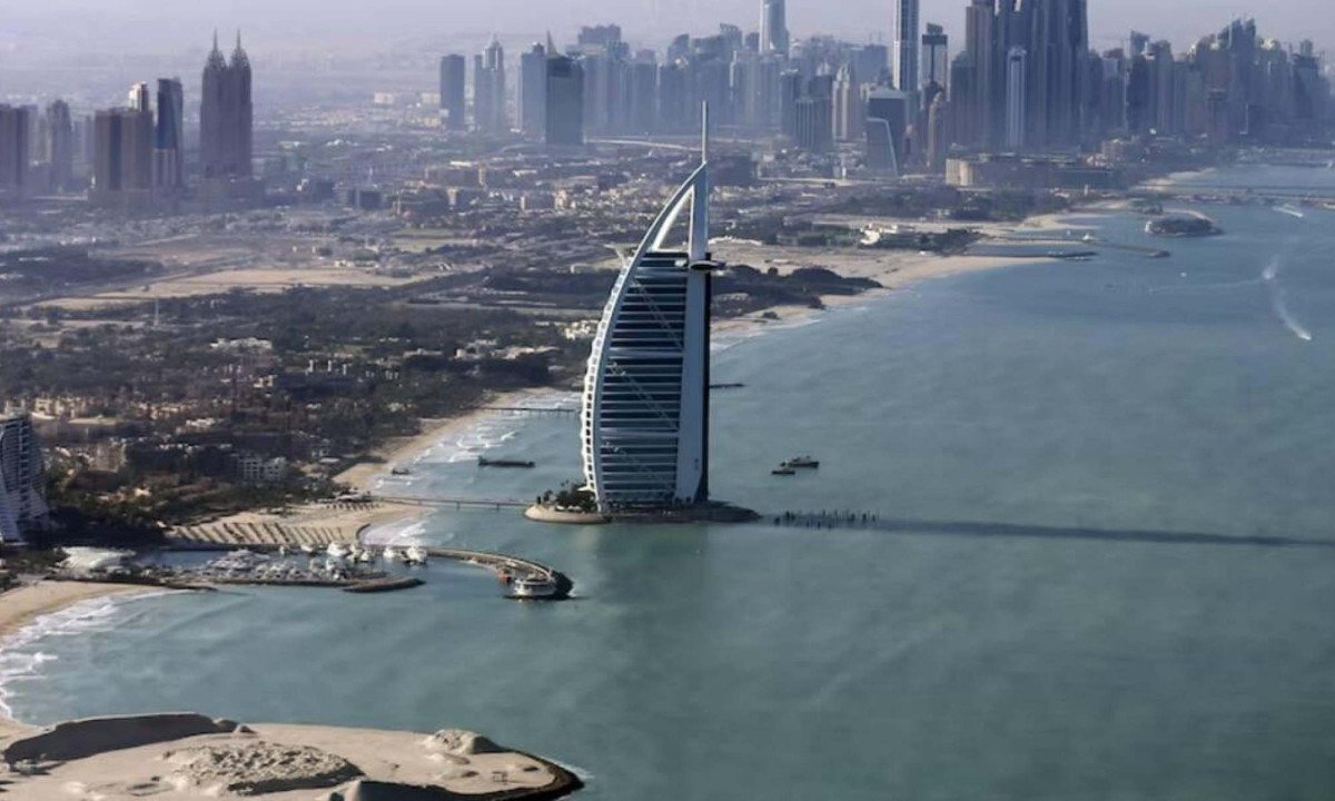 O emblemático Burj Al Arab, em Dubai, frequentemente chamado de “hotel 7 estrelas”, teria sido atingido por um míssil.