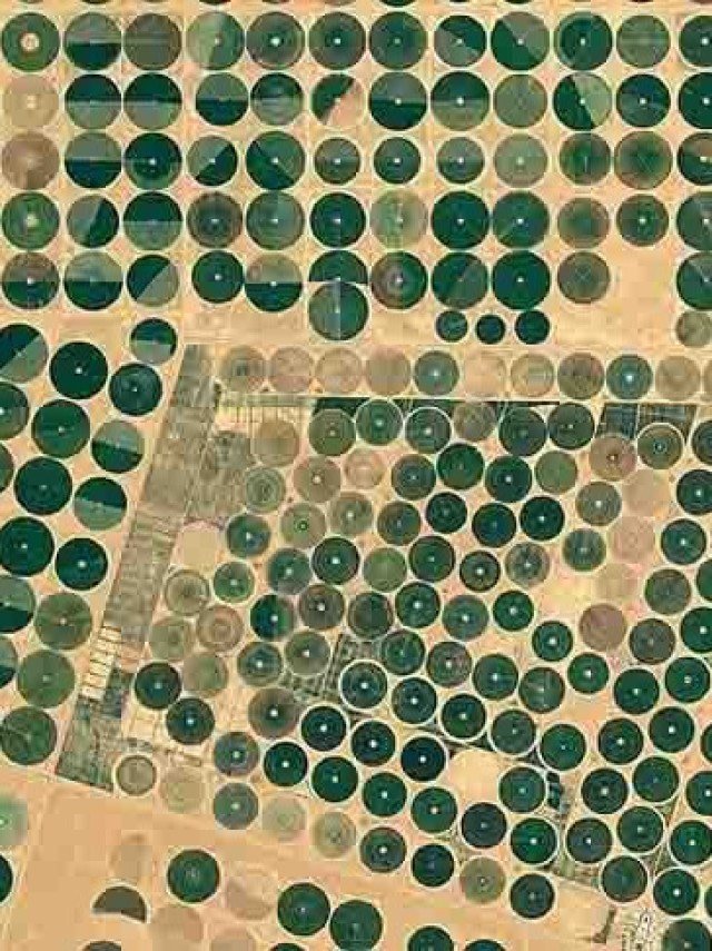 As imagens feitas do espaço mostram círculos e manchas verdes que compõem um projeto de mais de quatro décadas.