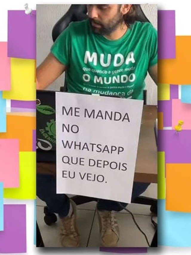 Os recados nas folhas de papel lembram as mensagens fixas que as pessoas deixam no whatsapp e que já se tornaram populares.
